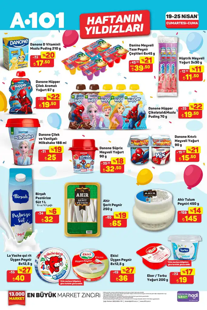 A101 yeni kataloğunu duyurdu. Haftanın Yıldızları kataloğunda market ürünlerinde çok sayıda üründe indirim var. İndirimler 19-25 Nisan arasında geçerli olacak. A101'de çekirdek, çikolata, zeytinyağı, çay, pirinç, peynir, yoğurt, beyaz peynir, tereyağı, süt, sucuk, mısır gevreği, sosis gibi ürünler indirimde.