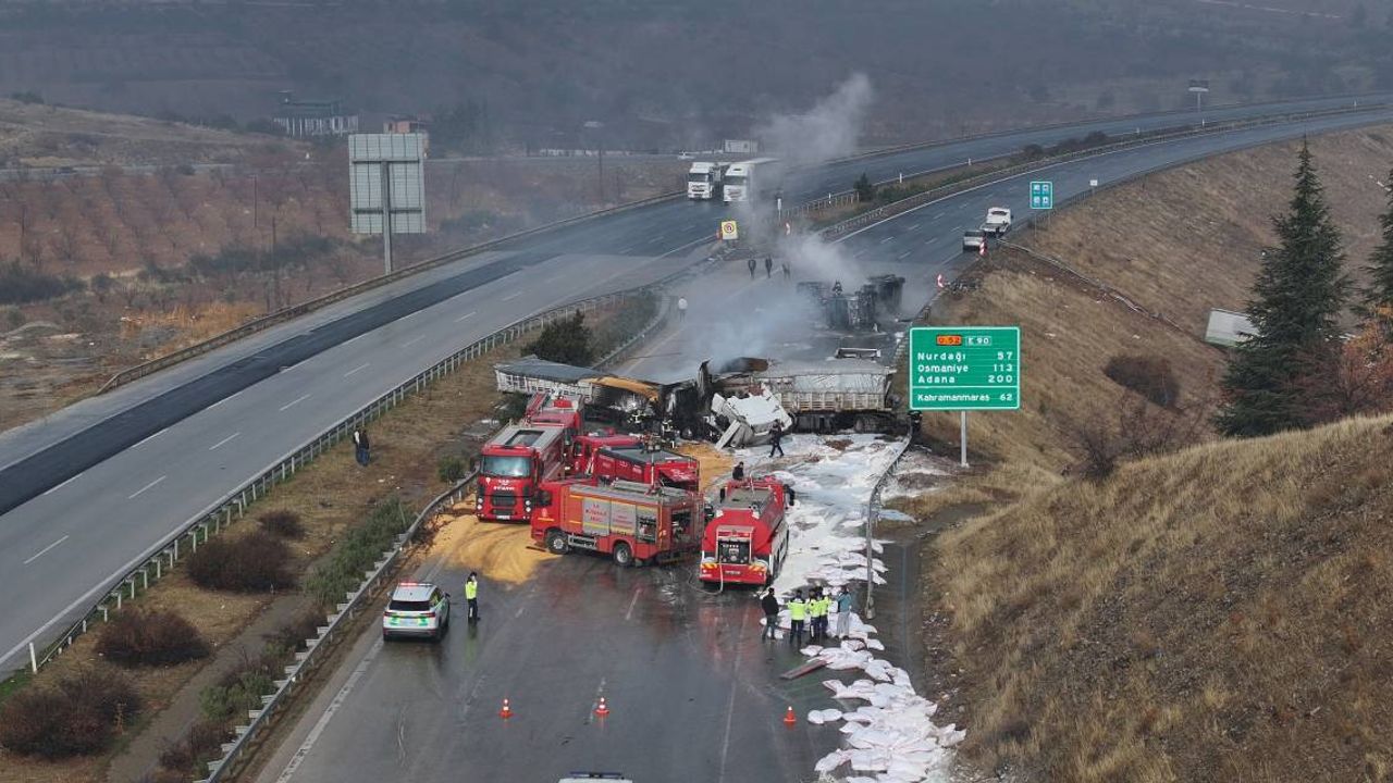 Tarsus-Adana-Gaziantep (TAG) Otoyolu'nun Gaziantep Batı Gişeleri yakınlarında meydana gelen zincirleme trafik kazasında, edinilen bilgilere göre plakaları ve sürücüleri henüz belirlenemeyen hububat yüklü 3 tır çarpıştı.