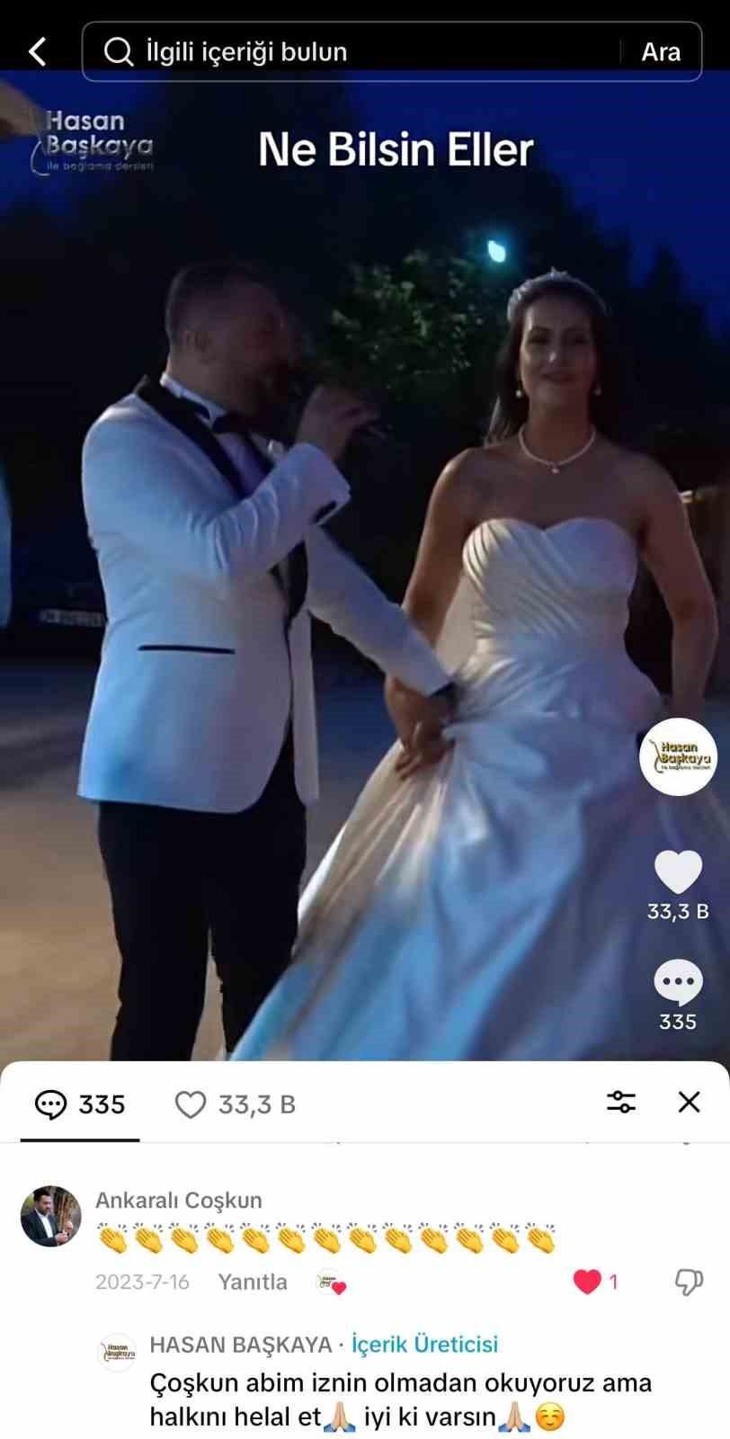 İzmir’de yaşayan konservatuar mezunu Hasan Başkaya ve amatör olarak şarkı söyleyen memur Öznur Başkaya, 2023’ün Haziran ayında dünya evine girdiler. Müzik tutkunu Başkaya çifti, düğünlerinde Ankaralı Coşkun’a ait ’Ne Bilsin Eller’ şarkısını söyleyerek çıktı. Çift, hem bu günlerini ölümsüzleştirdi hem de düğüne katılanlardan büyük alkış aldı. Şarkı söyledikleri video, sosyal medyada; özellikle de düğün sayfalarında paylaşıldı ve eserin sahibi Ankaralı Coşkun da videolardan birinin altına yorum yazarak çifti tebrik etti. Başkaya çifti, büyük ilgi gören görüntülerin ardından beklemedikleri bir süreçle karşılaştı. Eserin sahibi Ankaralı Coşkun olarak bilinen Coşkun Direk’in, videonun yayılması üzerine çift hakkında şikayetçi olduğu ve uzlaşma için 300 bin lira talep ettiği ortaya çıktı.