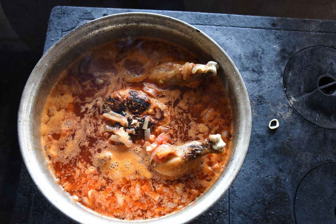 - Köy tavuğunu odun ateşinde bir tencerede 15 dakika kaynatın.