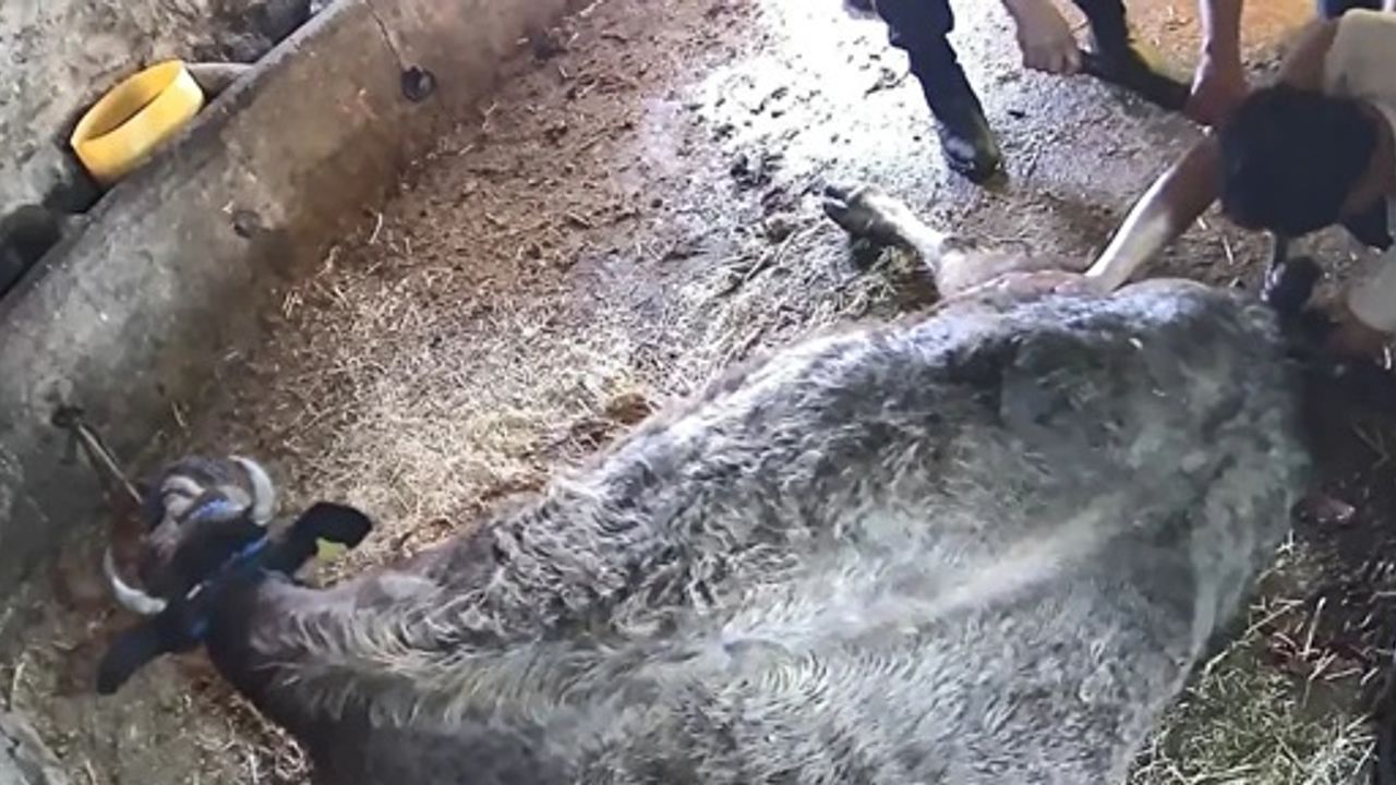 Ancak veteriner müdahalesi yerine ineğe anestezi verilmeden ekmek bıçağıyla müdahale edilerek sezaryen yapılmaya çalışıldı.
