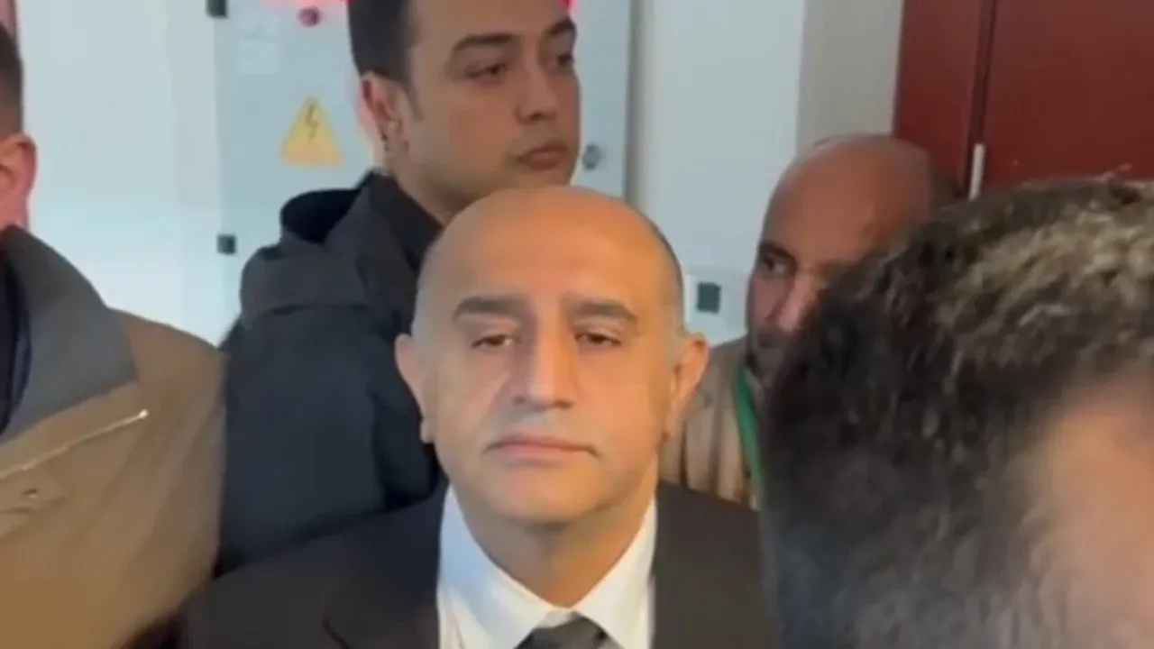 Dün çok sayıda korumayla salona gelen Aktaş, bugün de salonda yerini aldı.