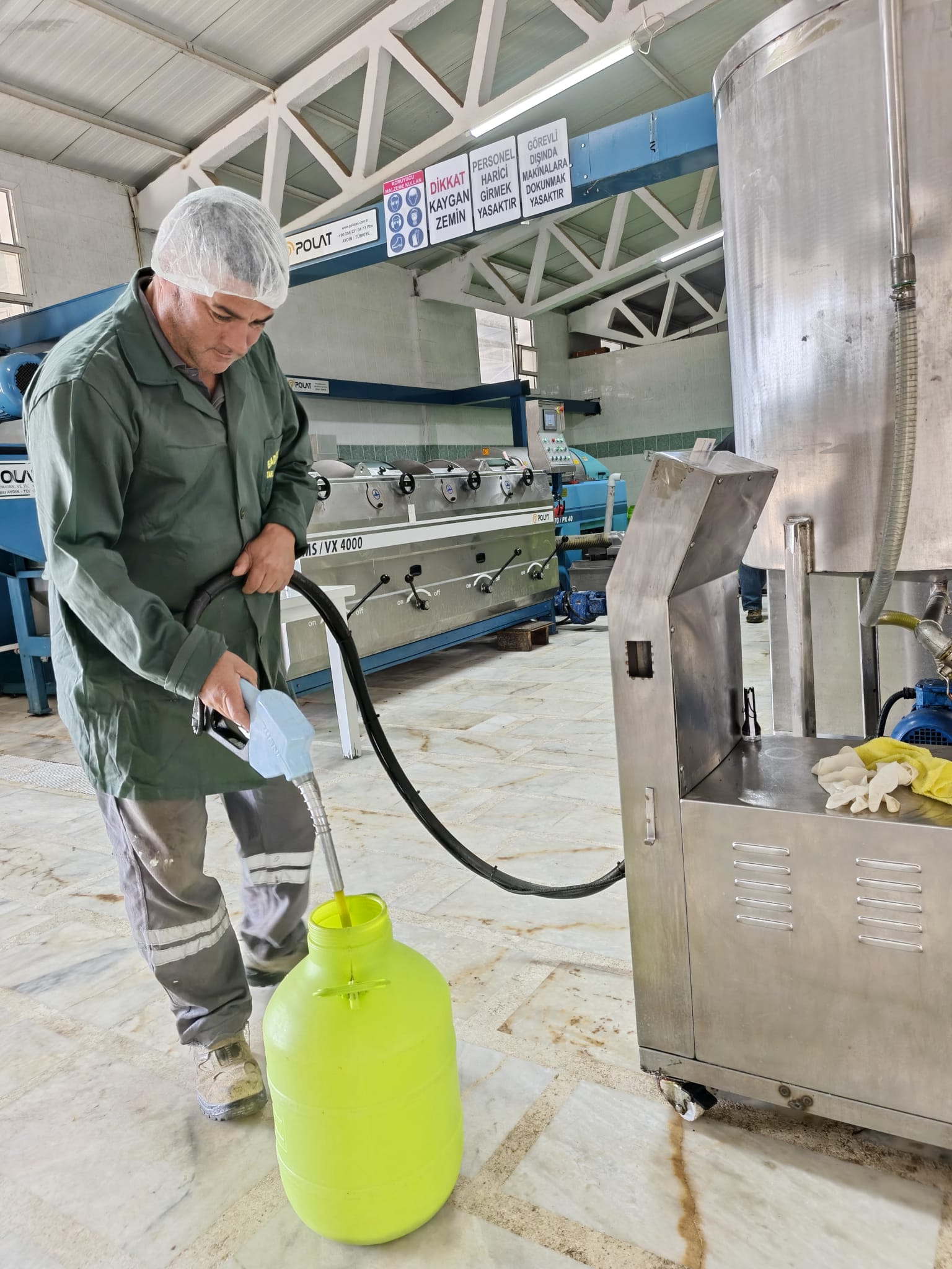 Hijyenik koşullar, anında sıkım imkânı ve deneyimli kadrosuyla Bademler Kooperatifi, bu sezon da üreticilere yüksek kaliteli, organik standartlarda zeytinyağı üretimi sunmayı hedefliyor.