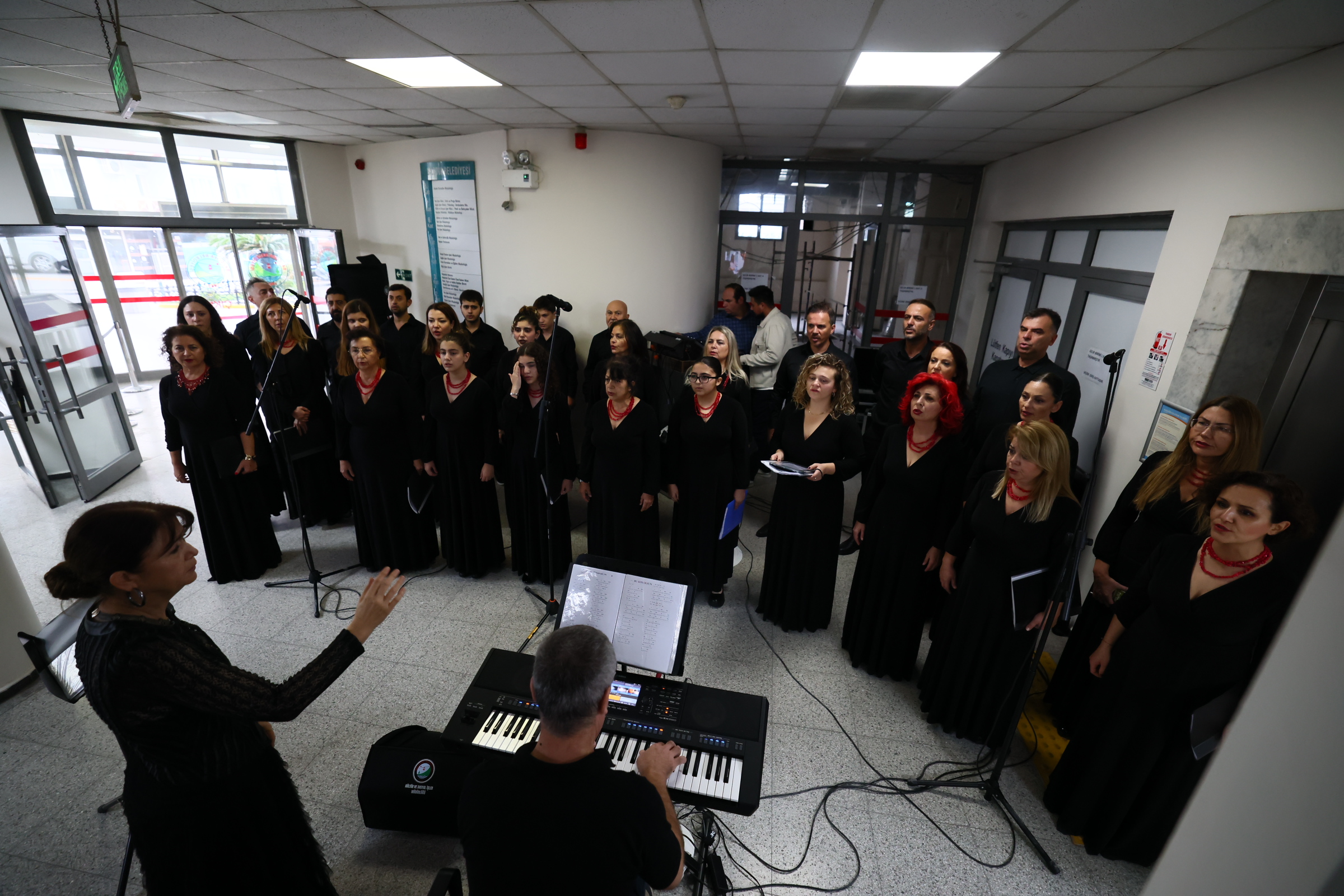 Balçova Belediyesi, Cumhuriyetimizin 102. yılı dolayısıyla personeline unutulmaz bir sürpriz hazırladı. Tam mesai çıkışı saat 17:15’te belediye binasında başlayan etkinlikte, Belediye Başkanı Onur Yiğit’in sürpriziyle Balçova Belediyesi Çok Sesli Korosu piyanoyla eşlik ederek özel bir konser verdi.