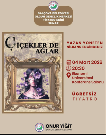 “Çiçekler de Ağlar” tiyatro oyunu, 4 Mart 2026 Çarşamba günü saat 20.30’da Ekonomi Üniversitesi Konferans Salonu’nda ücretsiz olarak sahnelenecek. Etkinliğe tüm yurttaşlar davetli olup, izleyiciler hem güçlü bir hikâyeye tanıklık edecek hem de 8 Mart’ın anlamı üzerine birlikte düşünme fırsatı bulacak.