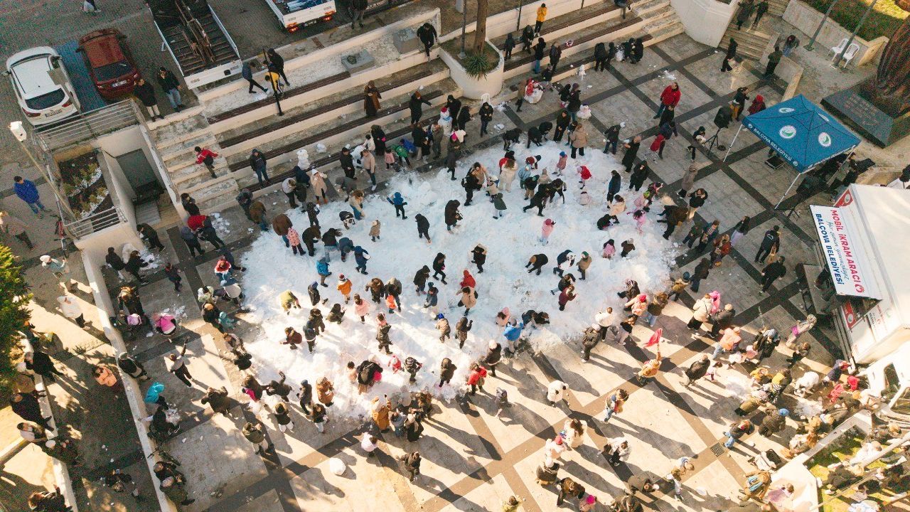 Uzak diyarlardan getirilen karla Balçovalılar unutulmaz bir gün yaşarken, Belediye Başkanı Onur Yiğit’de çocukların sevincine ortak oldu. Balçova Belediyesi, İzmir’de nadir yaşanan kar sevincini çocuklarla buluşturmak amacıyla belediye binası önünde Kar Şenliği etkinliği gerçekleştirdi. Etkinlik alanı kısa sürede dolarken, aileler ve çocuklar kar topu oynayarak doyasıya eğlendi.