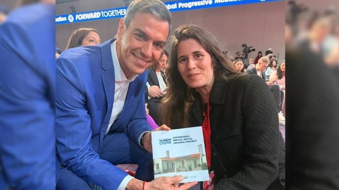 Savaşa karşı dik duruşu ve ezilenlerle gösterdiği dayanışmayla hepimize umut veren İspanya Başbakanı Sayın Pedro Sanchez'e, Hanem Çeşme modelimizi anlatma fırsatı buldum. İspanya'nın da ana gündemlerinden biri olan barınma krizine ilişkin fikir alışverişinde bulunduk. Kendisine ilgisi için teşekkür ediyorum. Dünyanın dört bir yanından, emekten, barıştan, özgürlükten yana olanlarla dayanışma içinde olmaya devam edeceğiz.