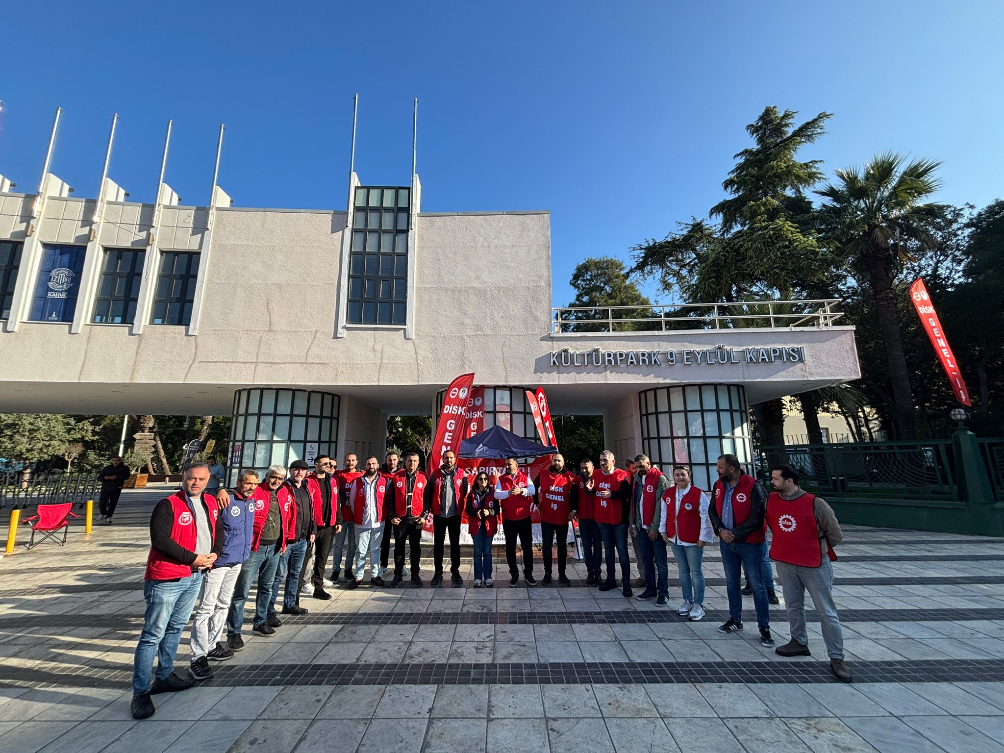 İzmir Büyükşehir Belediyesi’ne bağlı İZENERJİ, İZELMAN ve İZFAŞ işçileri, üç aydır ödenmeyen sosyal hakları için eyleme başladı. DİSK/Genel-İş İzmir şubelerinde örgütlü işçiler, belediye yönetimine seslerini duyurmak için salı günü Kültürpark’ta eylem yapma kararı aldı. Oturma eylemi üçüncü gününde 9 Eylül kapısında devam etti. Eylemin yarın da süreceği ifade edildi.
