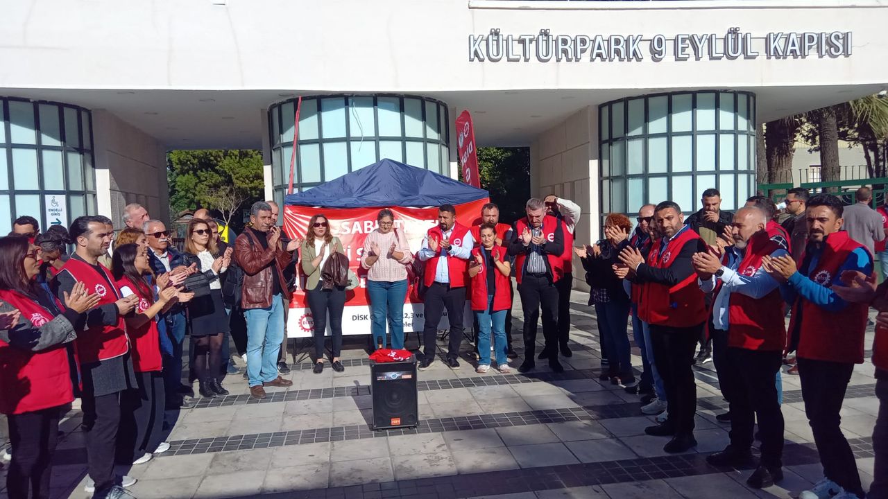 İzmir Büyükşehir Belediyesi’ne bağlı İZENERJİ, İZELMAN ve İZFAŞ işçileri, üç aydır ödenmeyen sosyal hakları için Salı günü eyleme başladı. DİSK/Genel-İş İzmir şubelerinde örgütlü işçiler, belediye yönetimine seslerini duyurmak için Kültürpark’ta direniyor. Kültürpark 9 Eylül kapısında devam eden eyleme dördüncü gününde KESK (Kamu Emekçileri Sendikaları Konfederasyonu) İzmir Şubeler Platformu’ndan destek geldi.