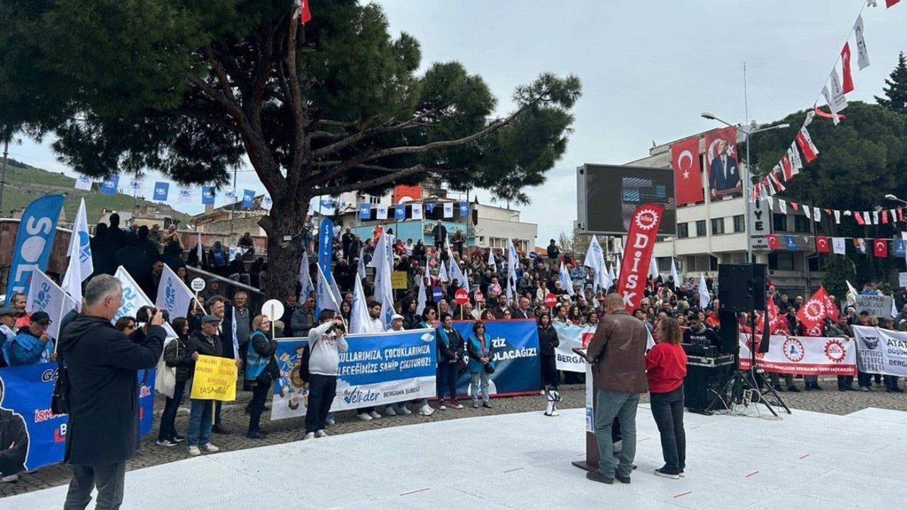 Bergama ve çevresindeki üreticiler ve çiftçiler de meydanda konuşma yaparak yaşanan ekonomik baskıya tepki gösterdi. Bir üretici, “Mazot, gübre, yem… Hepsi katlandı. Ürettiğimiz para etmiyor. Borçla üretim yapıyoruz, hasatta da borcu kapatamıyoruz. Şimdi bir de tarım alanlarımızı elimizden almak istiyorlar. Bu topraklar giderse biz ne yapacağız?” dedi.