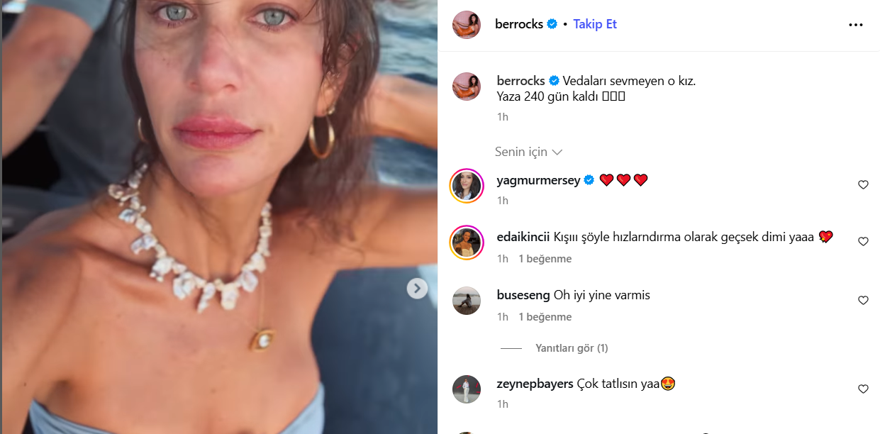 Tüzünataç’ın deniz ve güneş temalı kareleri, kısa sürede binlerce beğeni ve yorum yağmuruna tutuldu. Takipçileri, “Seninle yaz hiç bitmesin”, “Her mevsim ayrı güzelsin” yorumlarında bulundu.