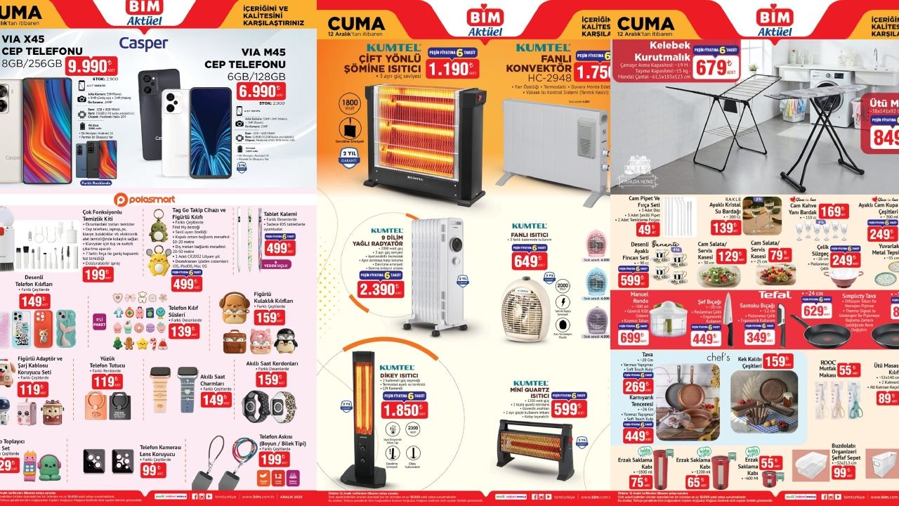 BİM, 12 Aralık 2025 için yeni aktüel ürünler kataloğunu duyurdu. Bu haftanın listesinde özellikle telefon ve elektrikli sobalar gibi elektronik ürünlerin fiyatları dikkat çekiyor.