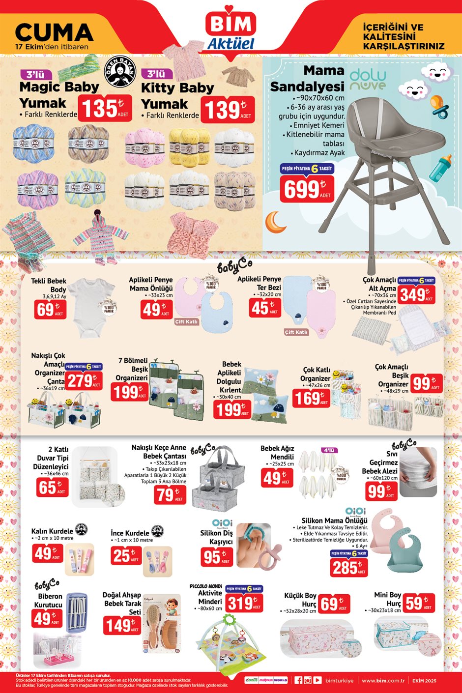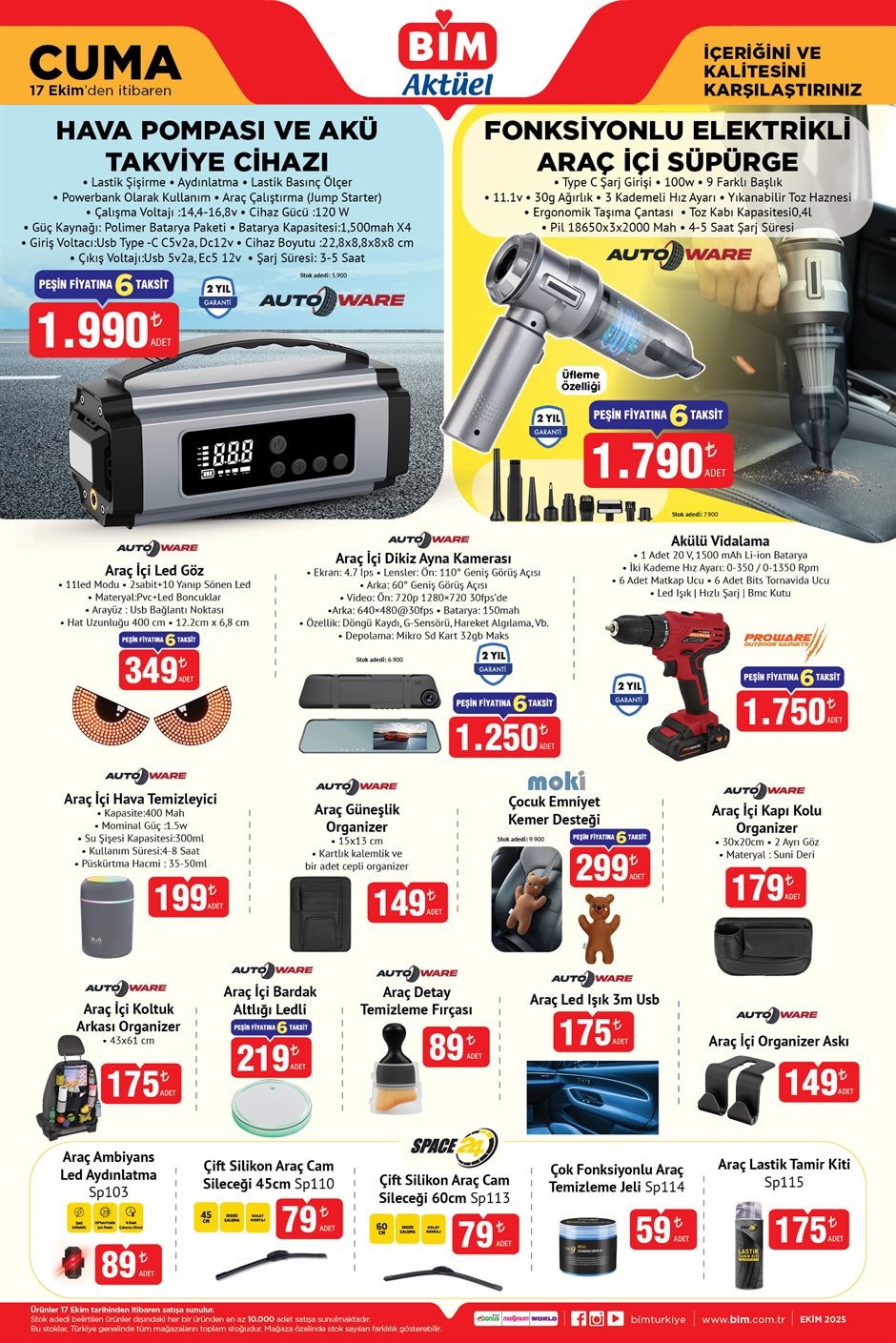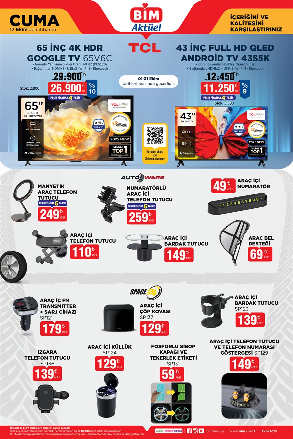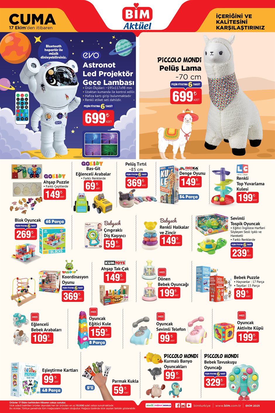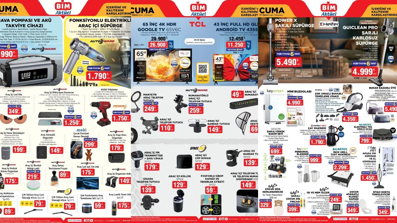 BİM, 17 Ekim 2025 tarihinden itibaren geçerli olacak yeni aktüel ürün kataloğunu yayımladı. Bu hafta teknoloji, ev ürünleri ve oyuncak kategorilerinde dikkat çeken fırsatlar yer alıyor. Müşteriler uygun fiyatlı ürünleri İzmir dahil BİM’in Türkiye genelindeki tüm mağazalarında bulabilecek. İşte güncel BİM kataloğu: