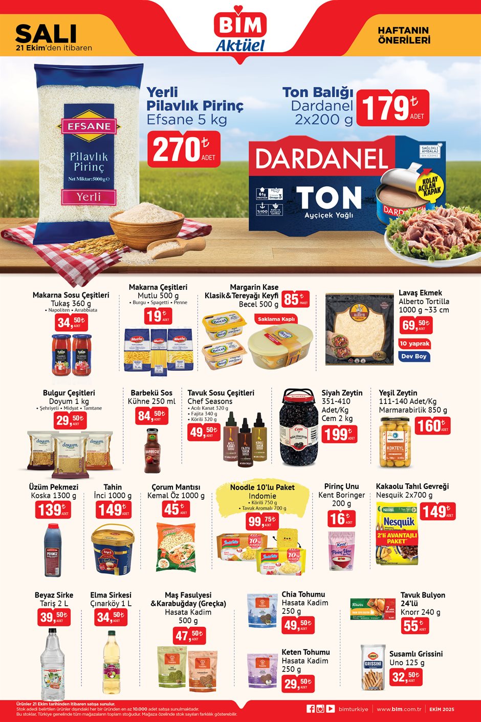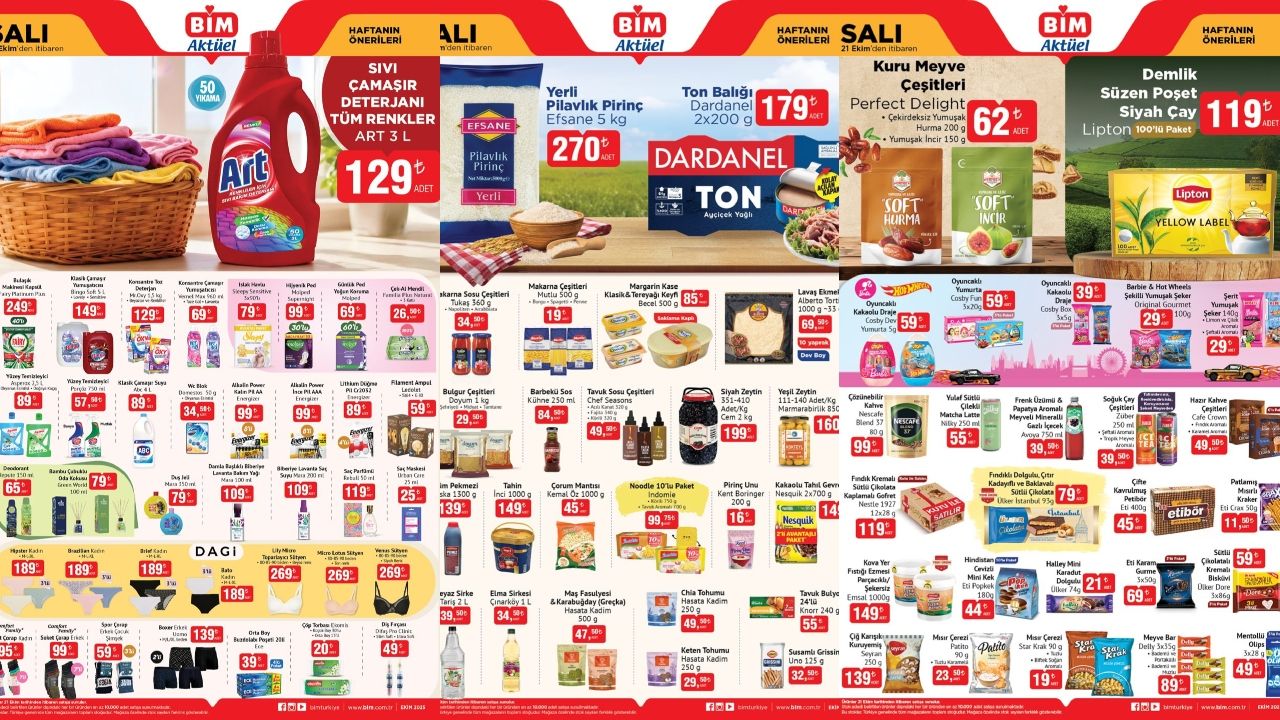 BİM, 21 Ekim 2025 tarihinden itibaren geçerli olacak aktüel ürün kataloğunu yayınladı. Yarın müşteriler, uygun fiyatlı ürünleri Türkiye genelindeki tüm BİM mağazalarında bulabilecek. Gıda ürünlerinden temizlik malzemelerine, atıştırmalıklardan kişisel bakıma kadar geniş bir yelpaze sunuluyor. İşte güncel BİM kataloğu: