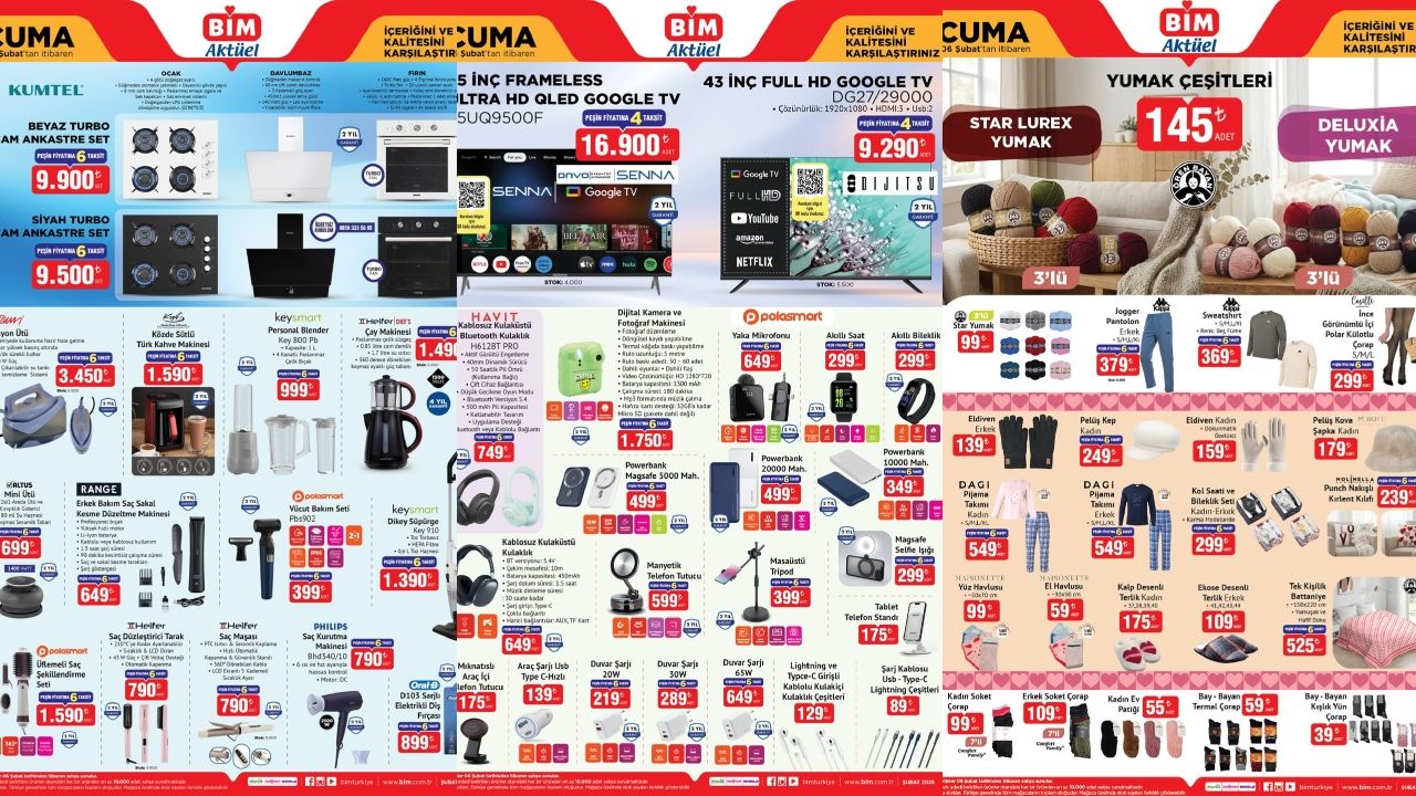 BİM, 6 Şubat 2026 Cuma günü satışa sunulacak aktüel ürünler kataloğunu duyurdu. İzmir’deki şubeler dahil olmak üzere tüm mağazalarda sınırlı sayıda uygun fiyatlı birçok teknolojik ürün raflarda yer alacak. Özellikle cuma günü BİM raflarında yer alacak uygun fiyatlı yaka mikrofonu şimdiden öne çıkıyor. İşte güncel BİM kataloğu..