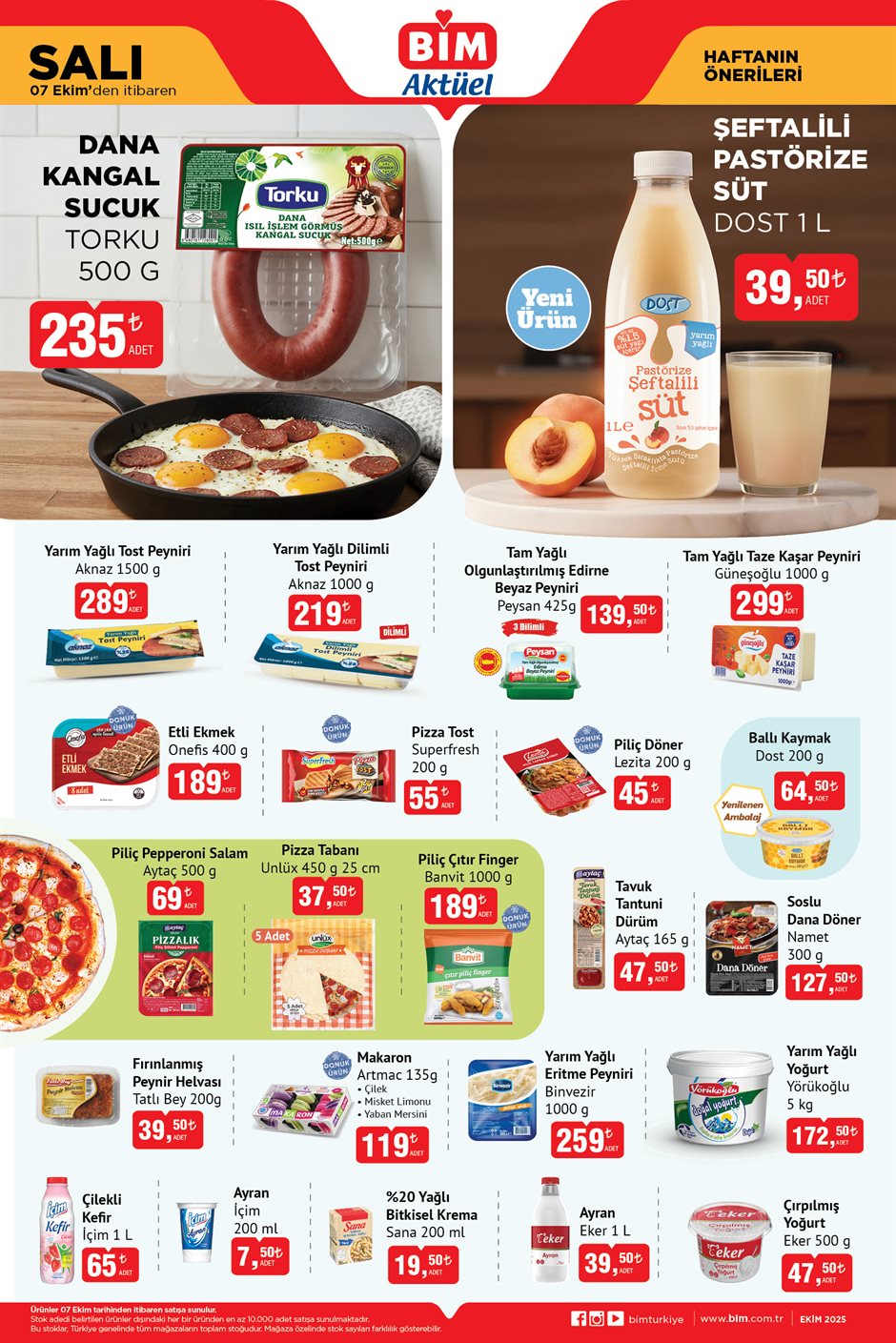 İzmir’de de şubeleri bulunan Türkiye’nin sevilen marketi BİM, müşterilerini bu hafta da çeşitli aktüel ürünlerle buluşturuyor. BİM’in 7 Ekim 2025 tarihli kataloğunda gıda ve atıştırmalıktan temel ihtiyaçlara kadar çok sayıda seçenek öne çıkıyor. Bu salı BİM raflarında çikolata çeşitleri, süt ürünleri, et ürünleri ve bakliyat gibi ürünler uygun fiyatlarla yer alacak.