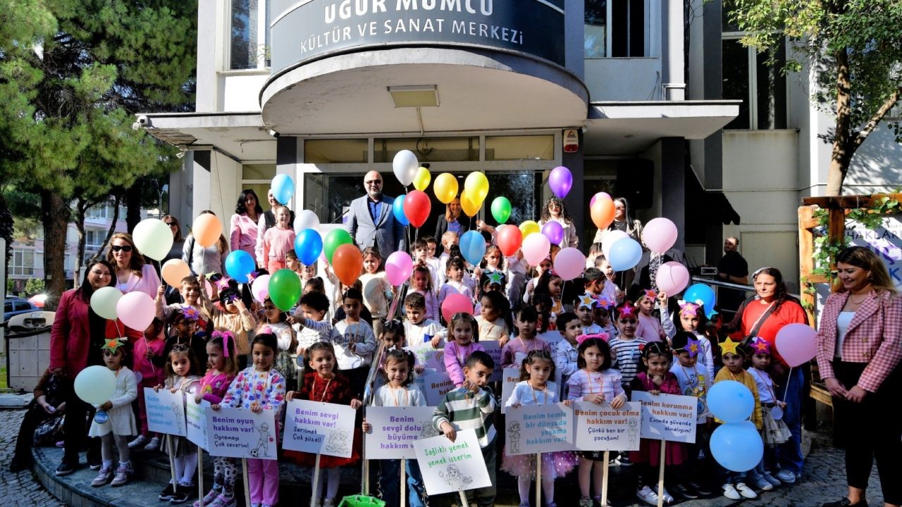 Manifesto okunduktan sonra çocuklar ellerindeki balonları bırakarak “Haklarım gökyüzüne, umutlarım geleceğe” dedi. Hep birlikte “Çocuk Hakları” şarkısını seslendiren minikler, mesajlarını tüm Bornova’ya duyurdu.