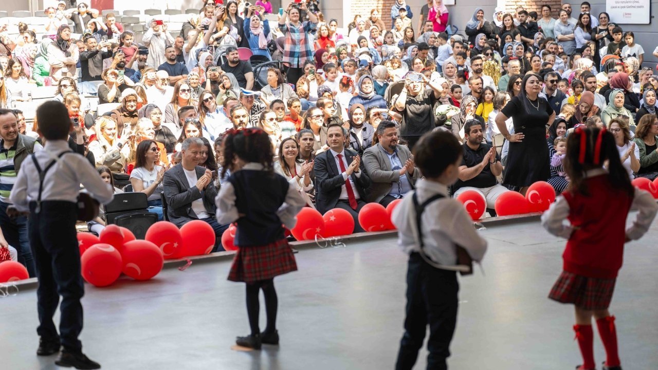 Gösterilerin sonunda tüm çocuklar sahneye birlikte çıkarak ellerinde Türk bayraklarıyla İzmir Marşı’nı söyledi. Duygusal anların yaşandığı finalde aileler, cep telefonlarıyla bu özel anları kayda aldı.