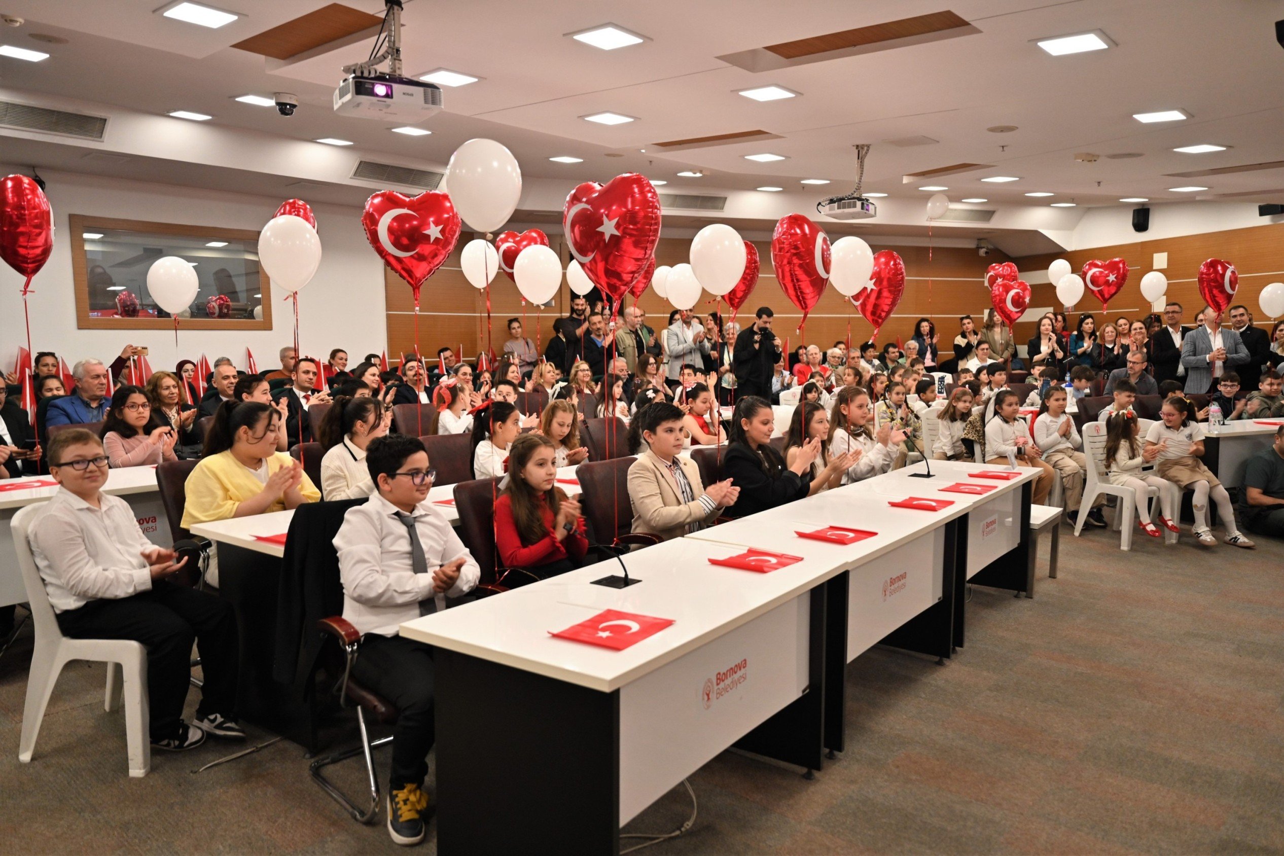 Bornova Belediyesi Meclis Salonu, “Söz çocuklarda” sloganıyla gerçekleştirilen 2. Bornova Çocuk Meclisi’ne ev sahipliği yaptı. Türk bayrakları ve kırmızı-beyaz balonlarla süslenen salonda etkinlik, Kahramanmaraş ve Şanlıurfa’da yaşanan saldırılarda hayatını kaybeden öğrenci ve öğretmenler için yapılan saygı duruşu ve ardından okunan İstiklal Marşı ile başladı.
