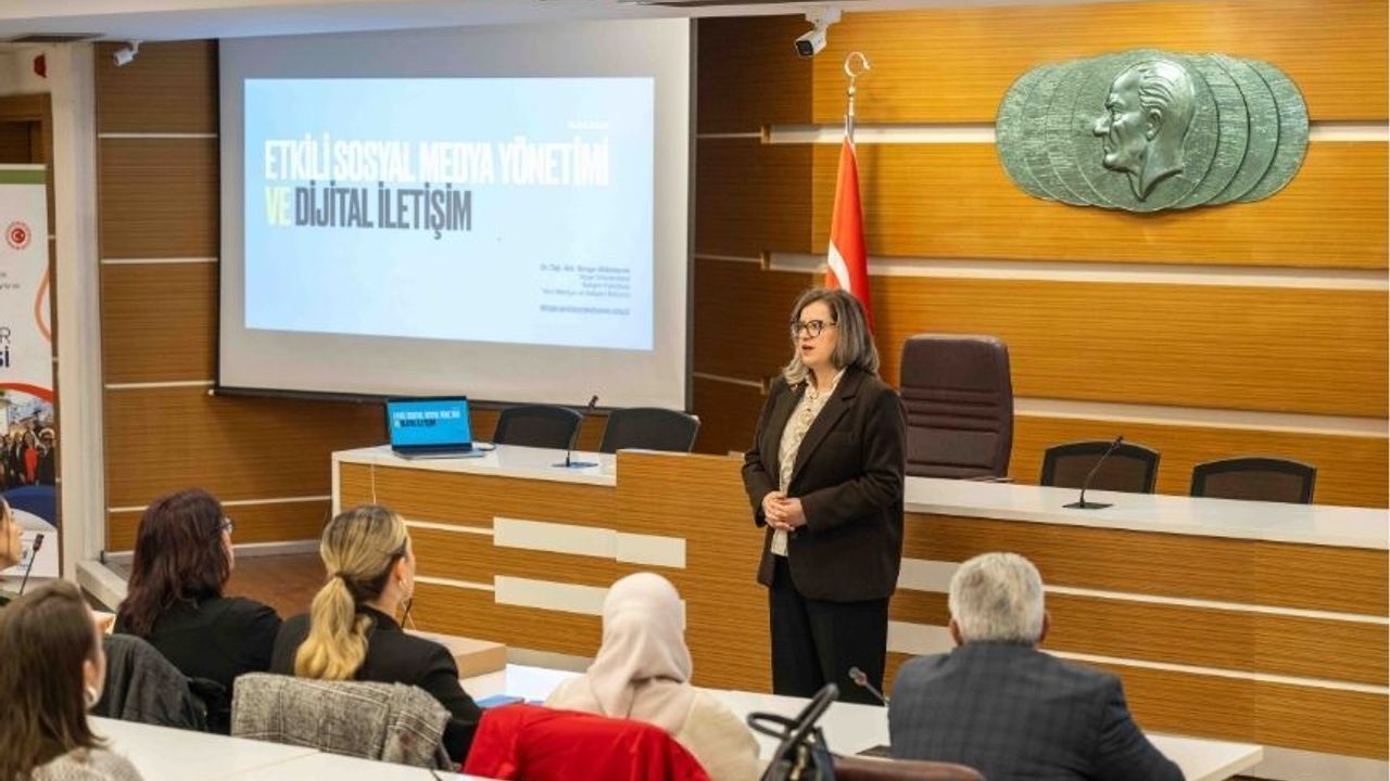 Dr. Öğr. Gör. Simge Gökbayrak, dijital iletişimin yalnızca teknoloji kullanımı olmadığını vurgulayarak, yeni medyada doğru iletişimin önemine dikkat çekti. Gökbayrak, yeni medyanın sadece bir teknoloji değil; etkileşim, yaratıcılık ve toplumsal duyarlılıkla şekillenen bir iletişim alanı olduğunu, sosyal medya kullanımında doğru içerik üretimi, şeffaf iletişim ve güvenilir bilgi paylaşımının kamu yöneticileri için kritik bir rol oynadığını ifade etti.