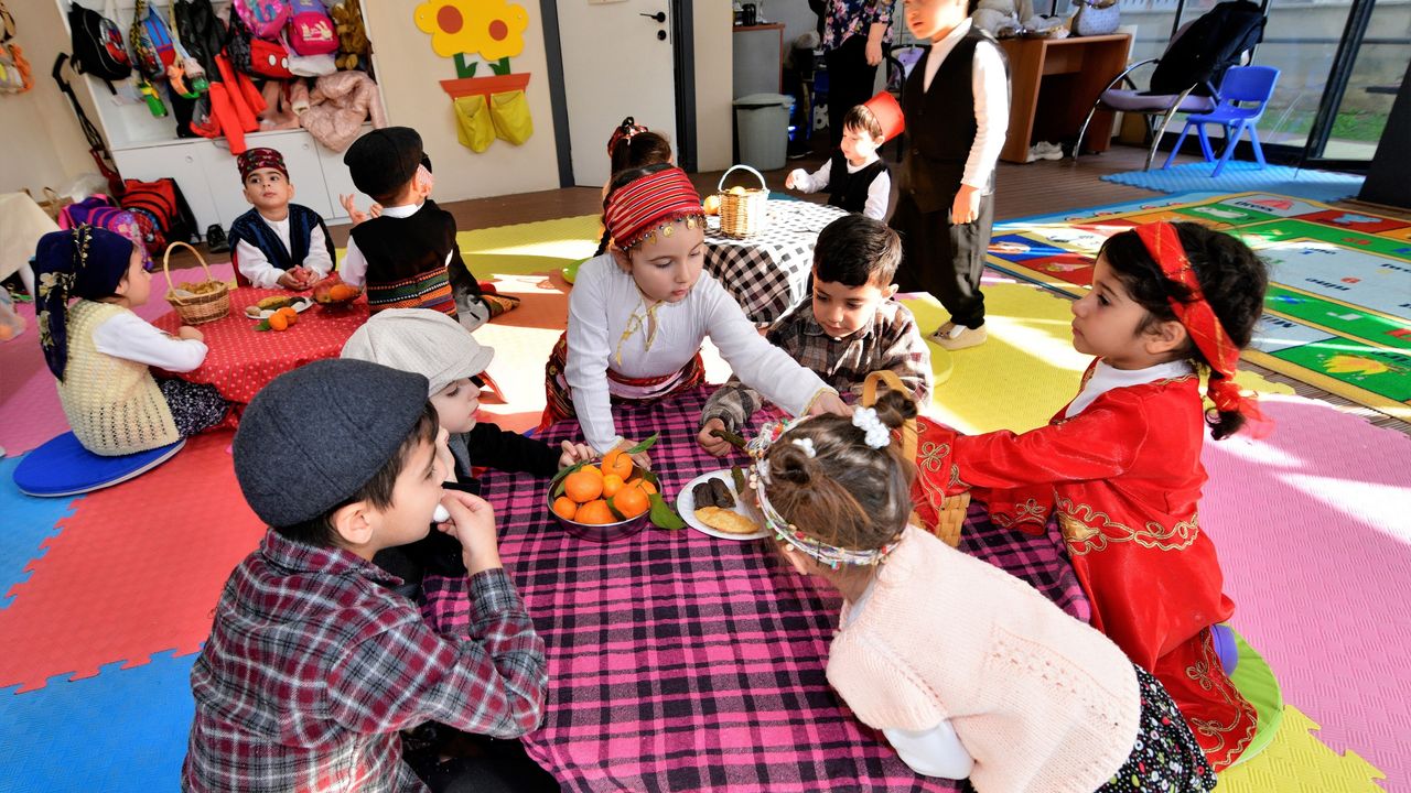 Bornova Belediyesi Pınarbaşı Çocuk Oyun ve Aktivite Merkezi’nden yararlanan 3-6 yaş arası minikler, getirdikleri yiyeceklerin yetiştiği yörelere ait kıyafetler giyerek yerli üretimin önemine dikkat çekti.