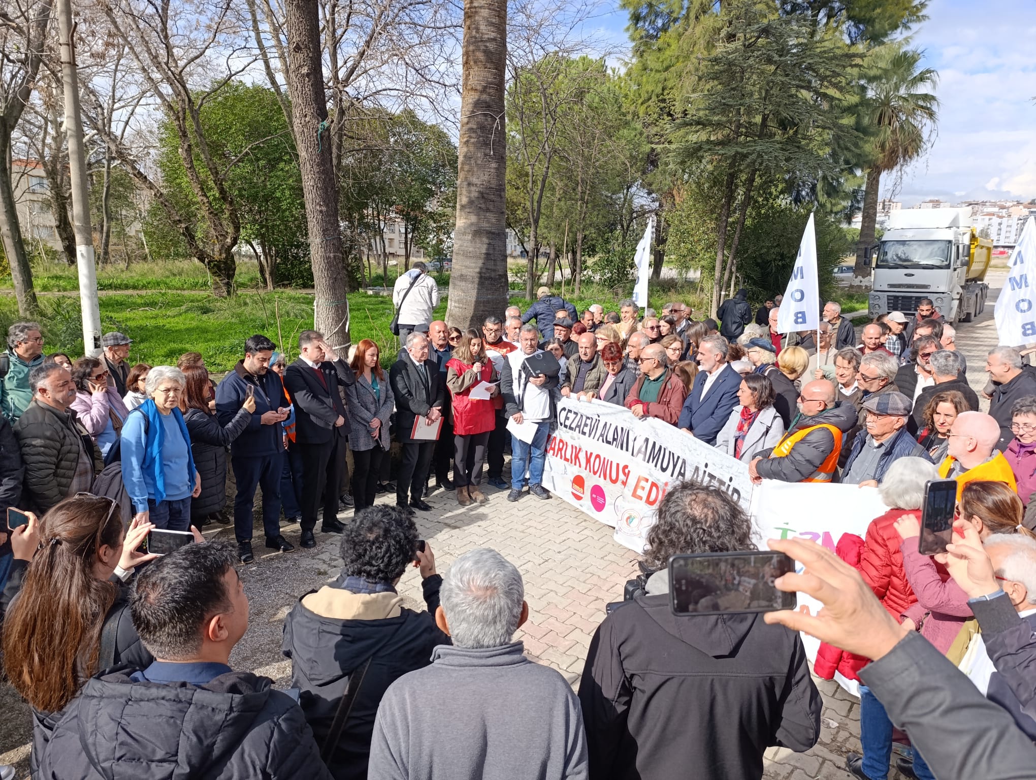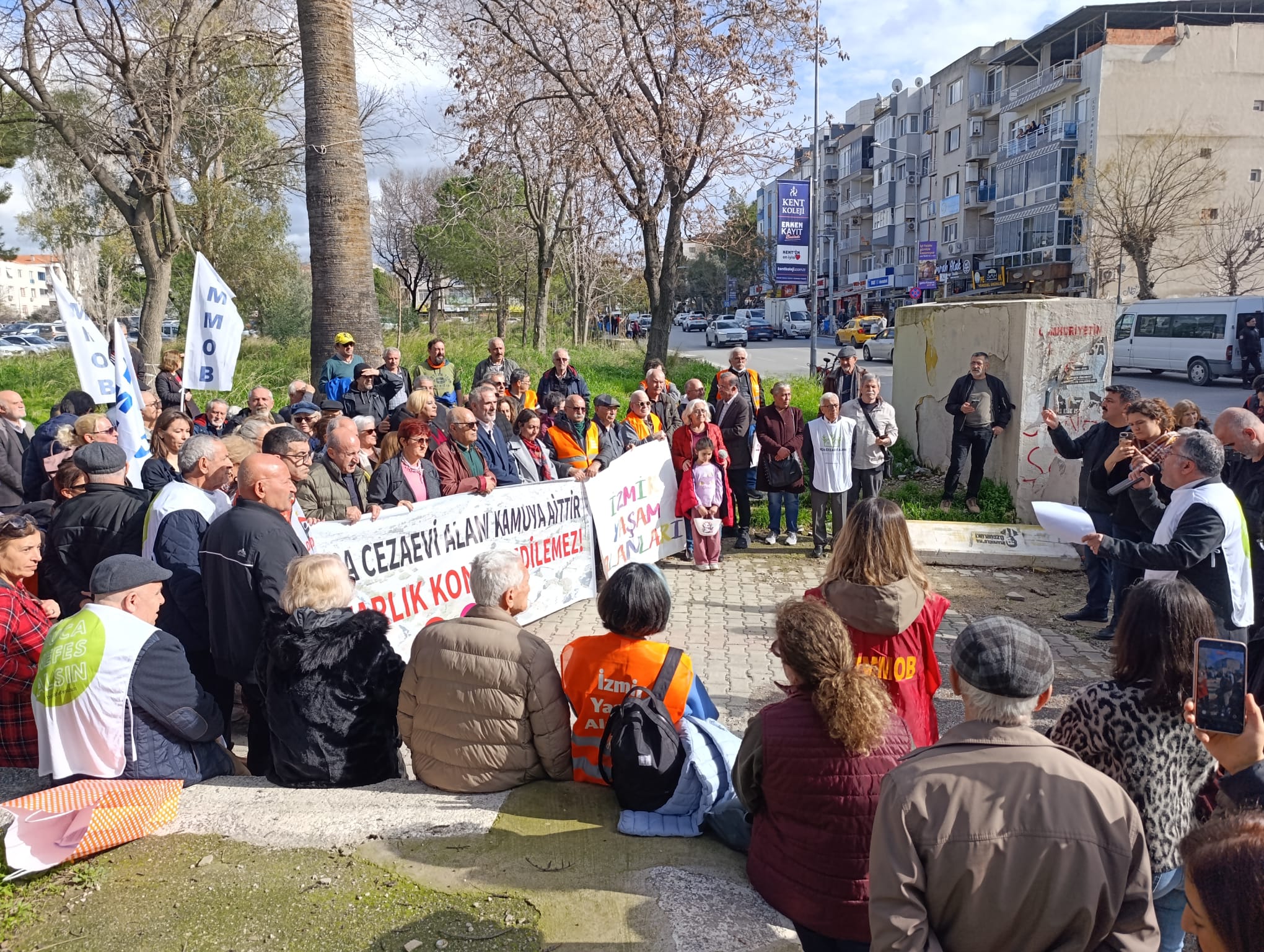 Eski Buca Cezaevi Ana Kapısı Önü’nde yapılan açıklamada şu ifadeler yer aldı: "2023 yılında söz konusu plan değişikliklerine karşı yürütmüş olduğumuz hukuki mücadele kazanımla sonuçlanmış; hem yüksek yoğunluklu yapılaşma öngören imar planları hem de rezerv yapı alanı kararı yargı kararlarıyla iptal edilmiştir. Böylece alanın tamamı kamu yararı doğrultusunda ve talep ettiğimiz şekilde “Rekreasyon Alanı” olarak belirlenmiştir.