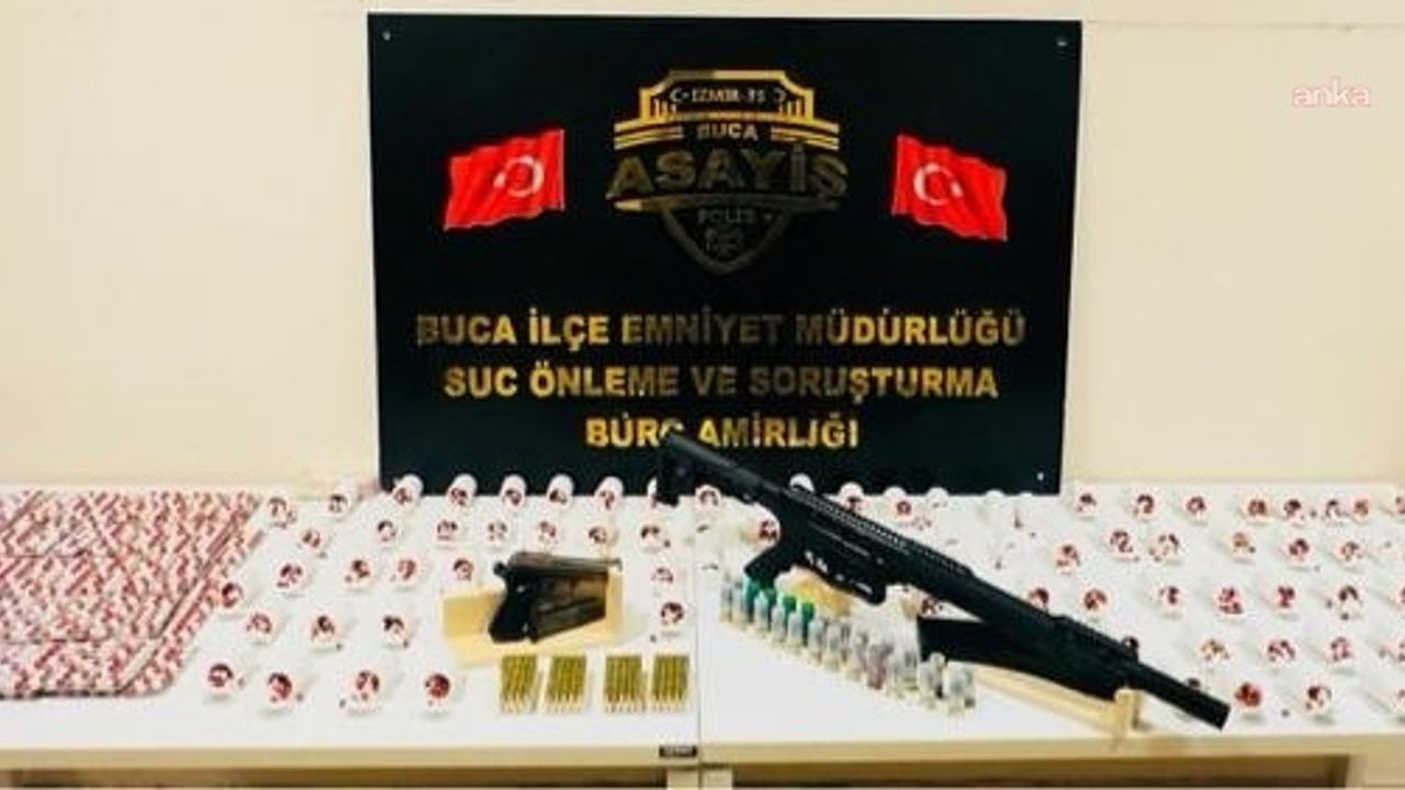 İzmir’in Buca ilçesinde polis ekiplerince düzenlenen operasyonda ruhsatsız silahlar ve 7 bin adet sentetik ecza ele geçirildi. Gözaltına alınan şüpheli adliyeye sevk edildi.