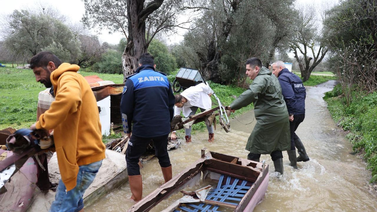 Çeşme Belediyesi 17 ekip ve 128 personelle ilçede dün gece saatlerinden itibaren etkili olan yoğun yağışa karşı sahaya indi.
