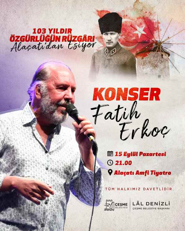 Akşam saat 21.00'de ise Alaçatı Amfi Tiyatro'da Fatih Erkoç konser verecek.