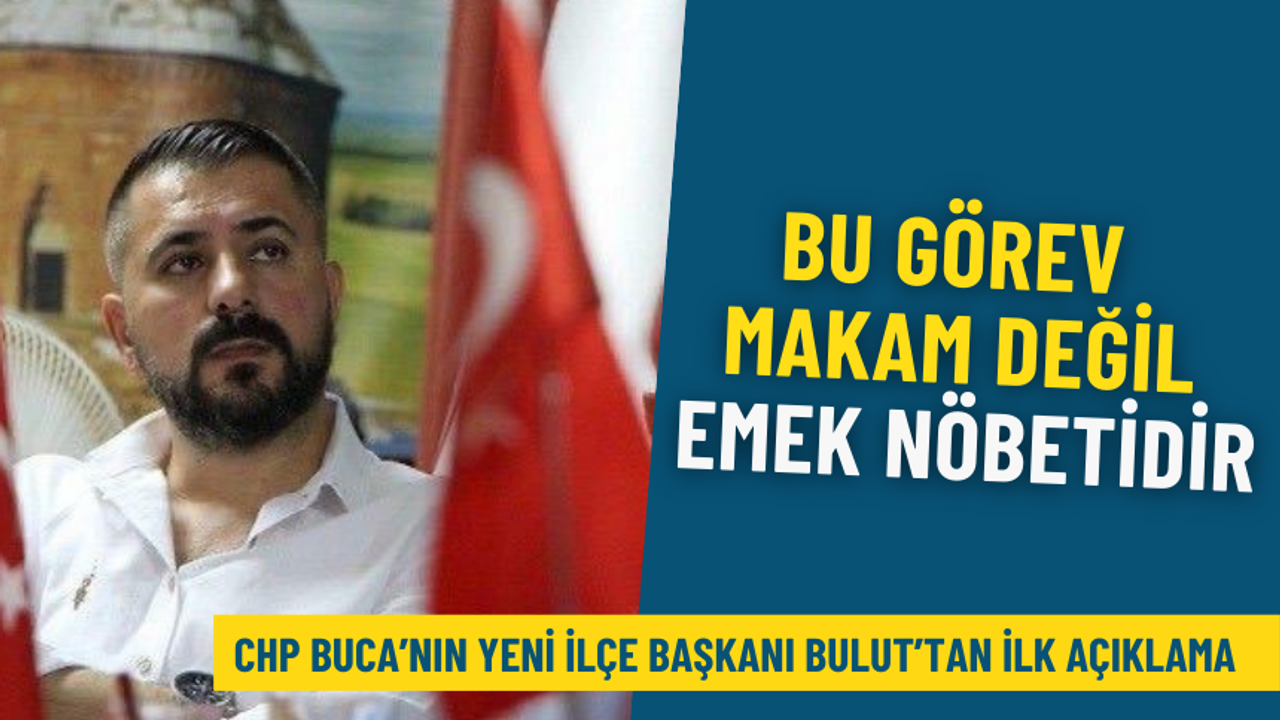 Cumhuriyet Halk Partisi Buca İlçe Başkanlığı’nda görev değişikliğinin ardından ilçe yönetimi tarafından başkanlığa seçilen Suat Bulut, yazılı açıklamada bulundu. Bulut'un açıklamasında, örgüt içi dayanışma, yerel yönetimlerle uyum ve partinin hedeflerine yönelik mesajlar yer aldı.