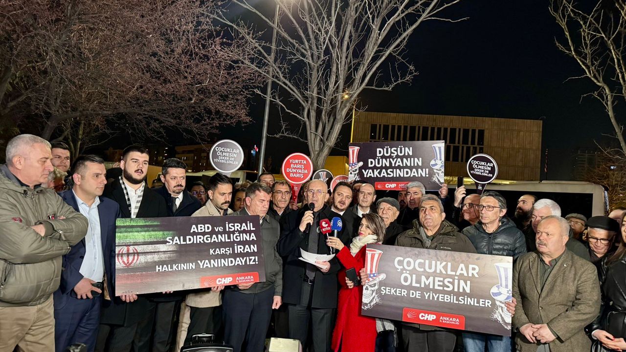 ABD ve İsrail’in İran’a yönelik saldırılarına karşı CHP’nin protesto gösterileri sürüyor. CHP Ankara İl Başkanlığı, ABD Büyükelçiliği önünde “Savaşa dur diyoruz" sloganıyla eylem düzenledi.