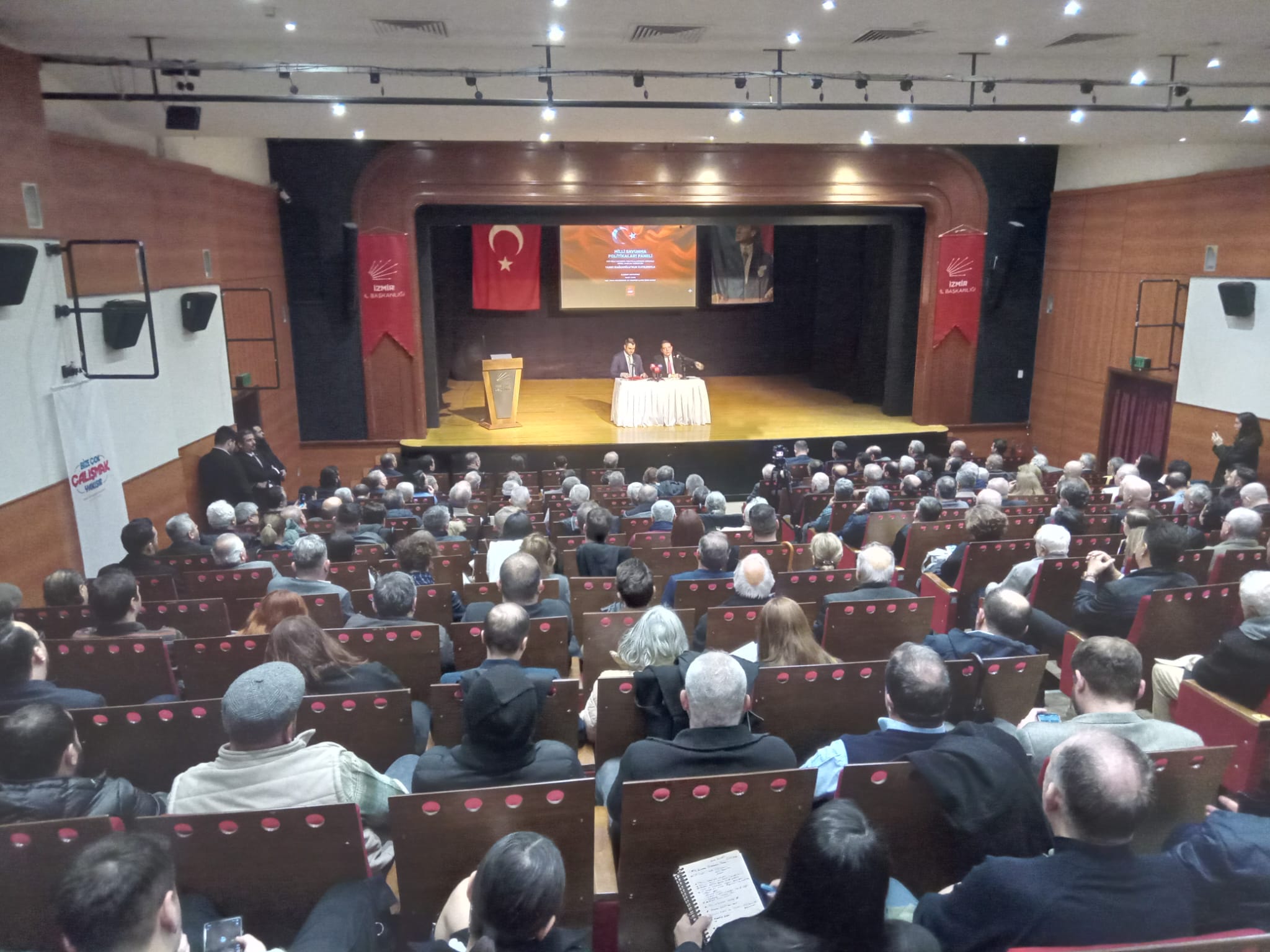 Cumhuriyet Halk Partisi (CHP) İzmir İl Başkanlığı tarafından düzenlenen Milli Savunma Politikaları Paneli, Kültürpark’taki İzmir Sanat’ta gerçekleştirildi. Panele CHP Milli Savunma Politikalarından Sorumlu Genel Başkan Yardımcısı Yankı Bağcıoğlu, CHP İzmir İl Başkanı Çağatay Güç, il ve ilçe yöneticileri, partililer, Türkiye Emekli Astsubaylar Derneği (TEMAD) İzmir Şubesi üyeleri ile şehit aileleri ve dernekleri katıldı.