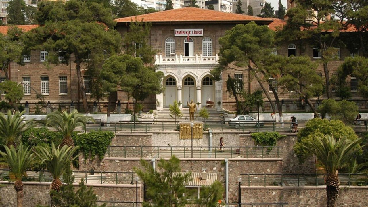 Türkiye’de Cumhuriyet’in ilk eğitim kurumlarından biri olan okulun binası 1917 yılında İzmir Valisi Rahmi Bey tarafından İttihat ve Terakki Mektebi olarak yaptırıldı, daha sonra erkek muallim mektebi olarak da kullanıldı. Yerleşim alanı 4428 metrekare olan ve iki kattan oluşan yapı taş duvardan oluşuyor. Tepeden bakıldığında H harfinde bir görünümü bulunan İzmir’in ilk kız okulu olan İzmir Kız Lisesi 1915 yılında Özel İdare’nin denetiminde İnas İdadisi adı altında eğitime başladı ancak dönemin Maarif Bakanlığı bu okulun masrafını kabul etmediğinden dolayı Sultani adını alamadı. Önceleri Kültür Park’a giden yol üzerinde İtalyan Kız Mektebi binasında hizmet veren bu İnas İdadisi, yeterli sayıda öğrencisinin olmaması ve harp yılları nedeniyle, eğitimine devam edemeyip kapandı. Yunan işgalinden sonra, 1922’de, şimdiki Karataş Lisesi’nin bulunduğu yerde mevcut eski bir köşkte eğitime başlayan bina İzmir Kız Sultanisi adını aldı. Böylelikle İzmir Kız Lisesi’nin de temellerini oluşturan okul 1923 yılında bakanlıkça İzmir Kız Lisesi adı altında teşkilatlandırıldı.