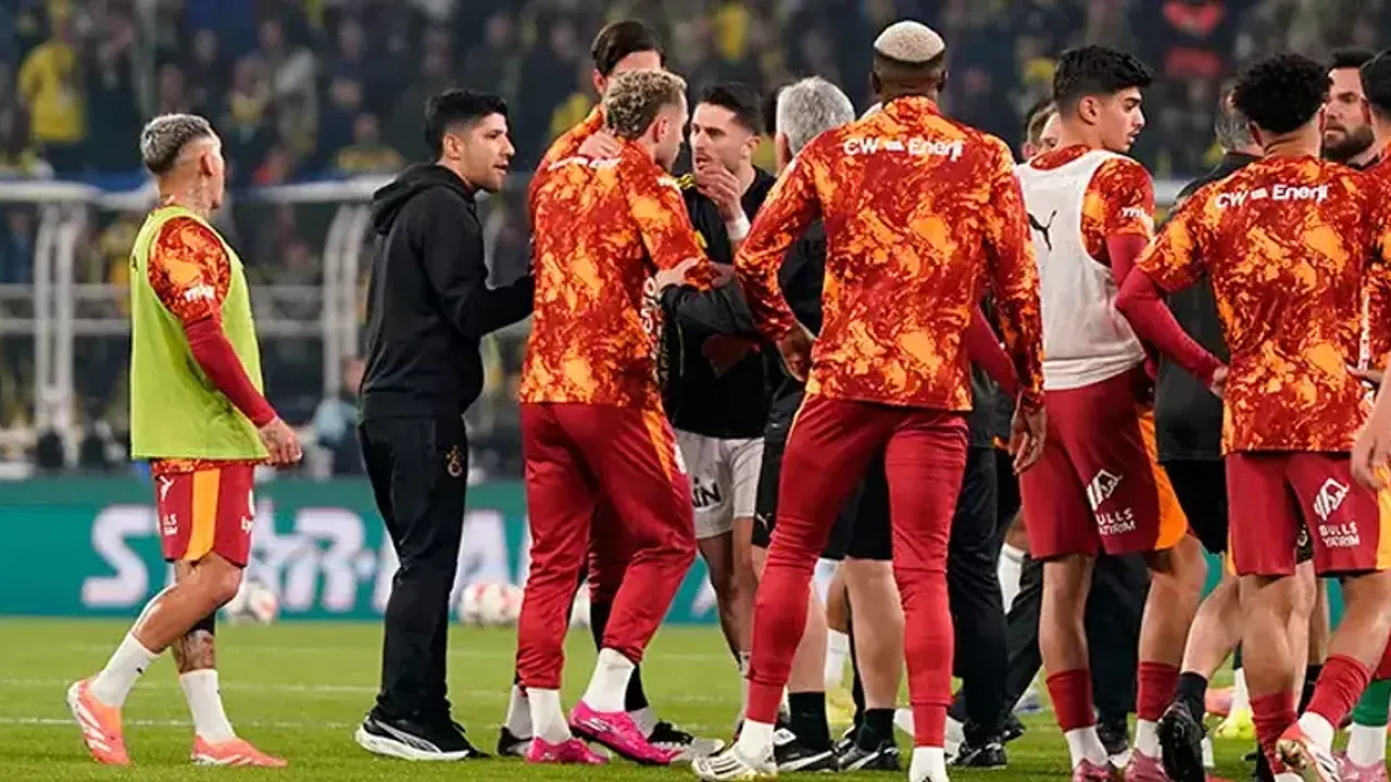 Fenerbahçe ve Galatasaray’ın dev karşılaşması öncesi, ısınmaya çıkan oyuncular arasında tansiyon yükseldi ve kısa süreli bir tartışma yaşandı.