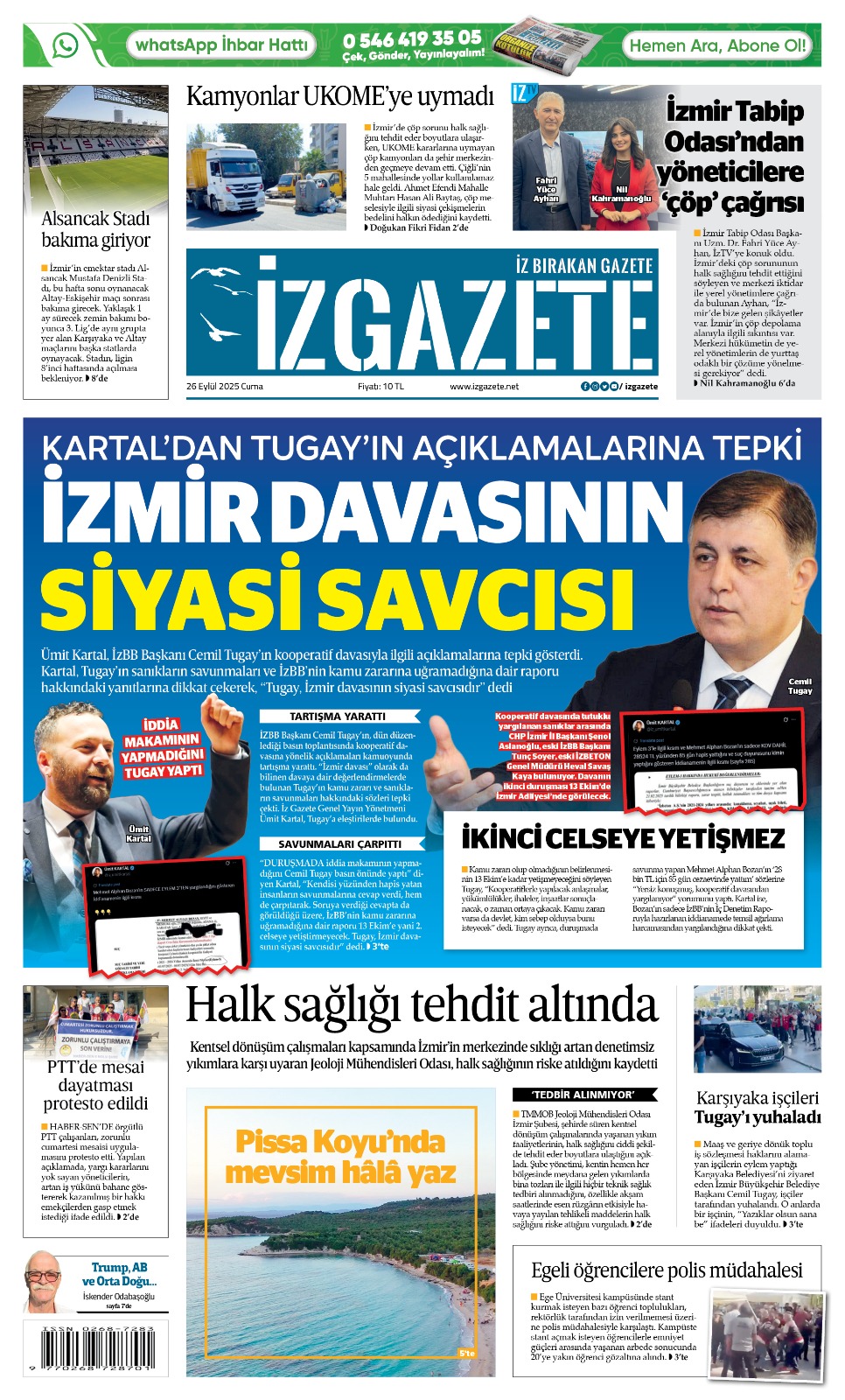 Ümit Kartal, İzBB Başkanı Cemil Tugay'ın kooperatif davasıyla ilgili açıklamalarına tepki gösterdi. Kartal, Tugay'ın sanıkların savunmaları ve İzBB'nin kamu zararına uğramadığına dair raporu hakkındaki yanıtlarına dikkat çekerek, "Tugay, İzmir davasının siyasi savcısıdır" dedi.