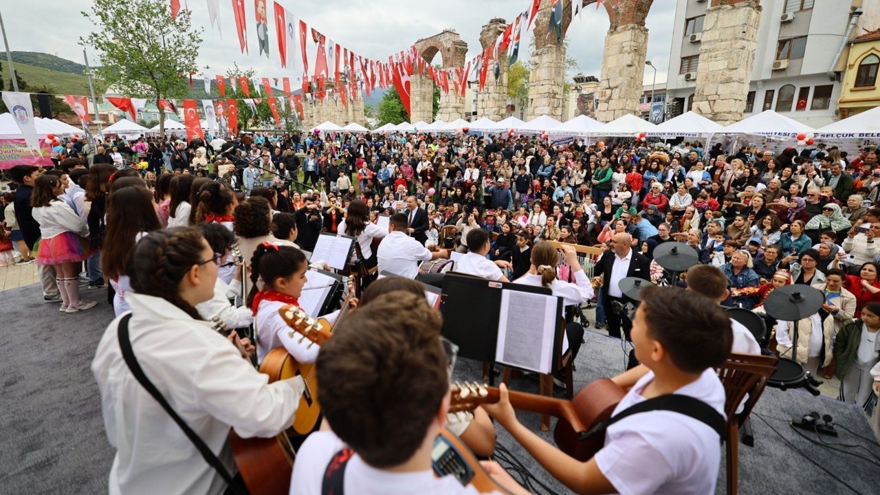 Efes Selçuk Belediyesi Çocuk ve Gençlik Bandosu’nun alana girişiyle başlayan şenlikte saygı duruşu ve İstiklal Marşı’nın ardından çocuklar Andımız’ı okudu. Başkan Filiz Ceritoğlu Sengel, Andımız’ın okunmasından etkilendiğini belirterek; “Yıllarca okullarda Andımız’ı kaldıranlar adına bizler sizlerden özür dileriz” dedi.