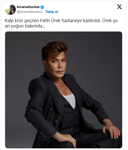 Fatih Ürek’in sağlık durumuna ilişkin ilk bilgiler gazeteci Birsen Altuntaş’ın sosyal medya paylaşımıyla kamuoyuna ulaştı. Altuntaş, Ürek’in kalp krizi geçirdiğini ve yoğun bakımda tedavi gördüğünü belirtti.
