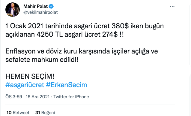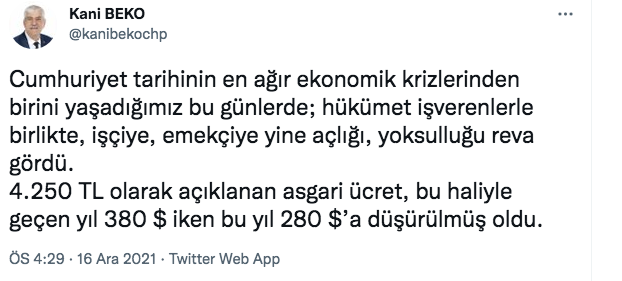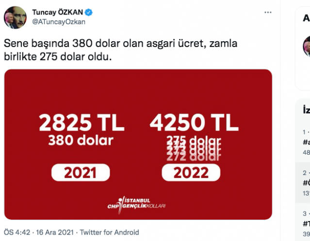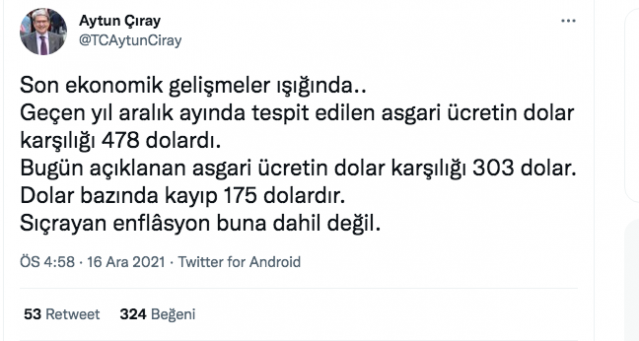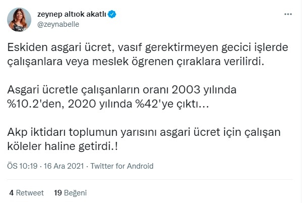 1 Aralık'ta başlayan asgari ücret maratonunda sona gelindi. AKP'li Cumhurbaşkanı Recep Tayyip Erdoğan'ın 2022 için net asgari ücretin yüzde 50 artışla 4.253,40 TL olarak belirlendiğini söyledi. Erdoğan'ın açıklamasına muhalefet vekillerinden tepki gecikmedi.