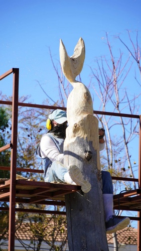 Çeşme'mizde yaşamanın ayrıcalıklarını, güzelliklerini sizlere sunuyoruz. Belediyemiz bünyesinde, Heykeltraş Onur Canka, Alaçatı Çamlık yolda bulunan, ömrünü tamamlamış ağaçlara yeniden can veriyor. Sabah yürüyüşlerinizde ağaçların ruhu size eşlik edecek..." ifadelerini kullandı.