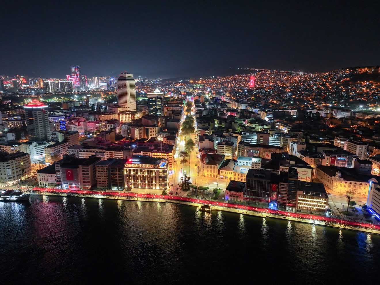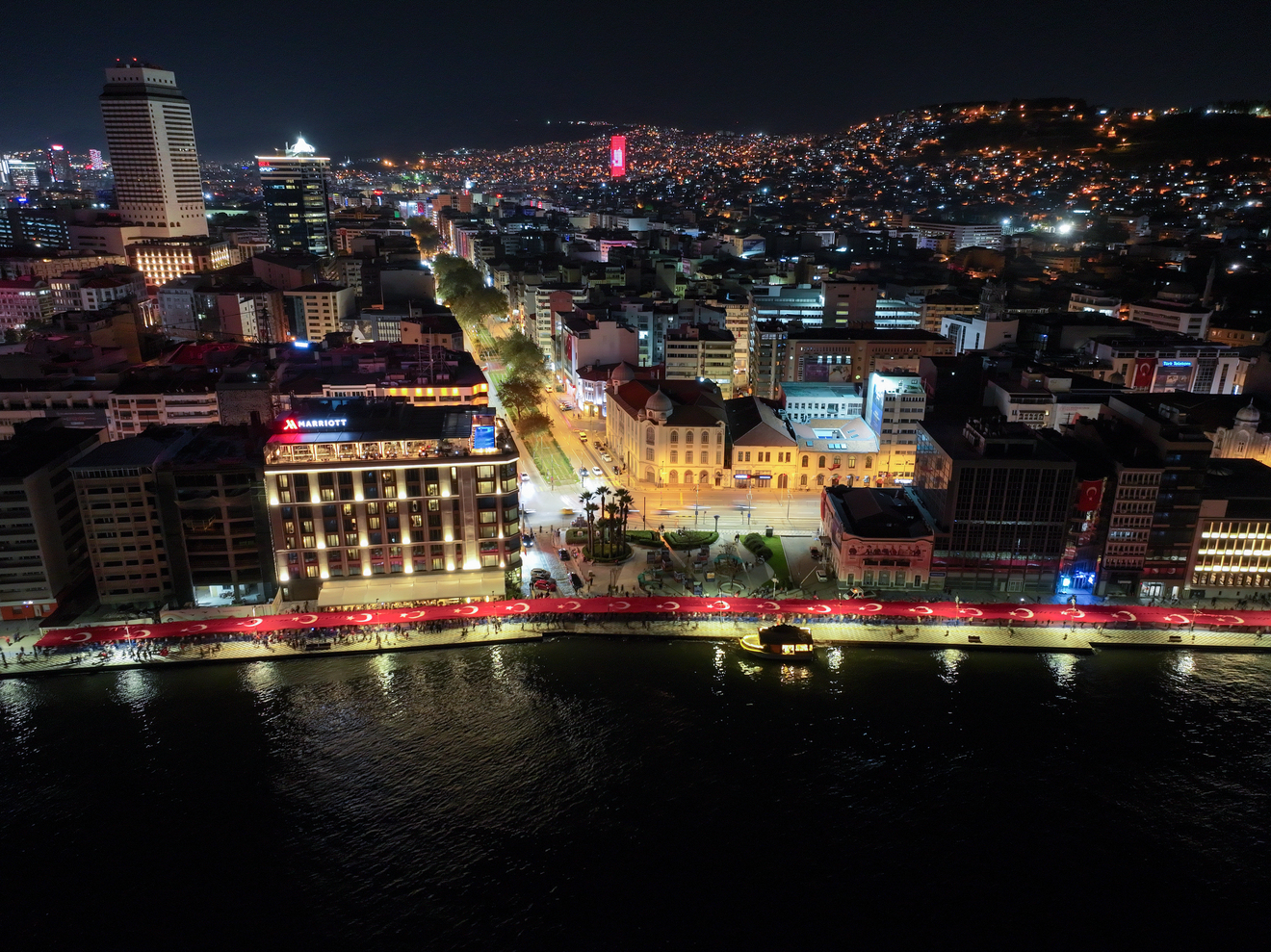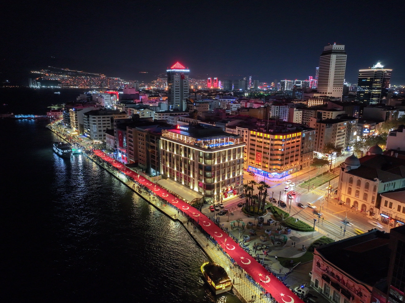 İzmir'de, Cumhuriyet'in kuruluşunun 102. yıl dönümü ve 29 Ekim Cumhuriyet Bayramı kutlandı. İzmir Valiliği tarafından Cumhuriyet Bayramı kutlamaları kapsamında Konak Meydanı'nda açılan 350 metrelik Türk bayrağı ile Cumhuriyet Meydanı'na yürüyüş ve fener alayı düzenlendi.
