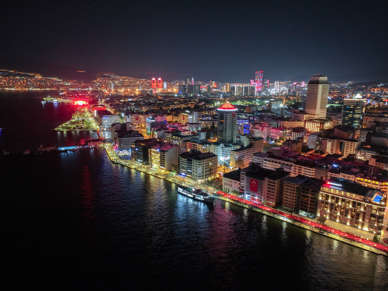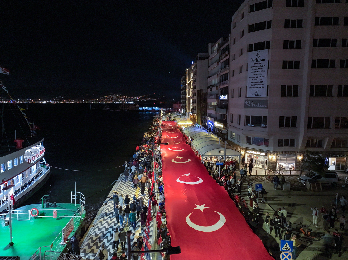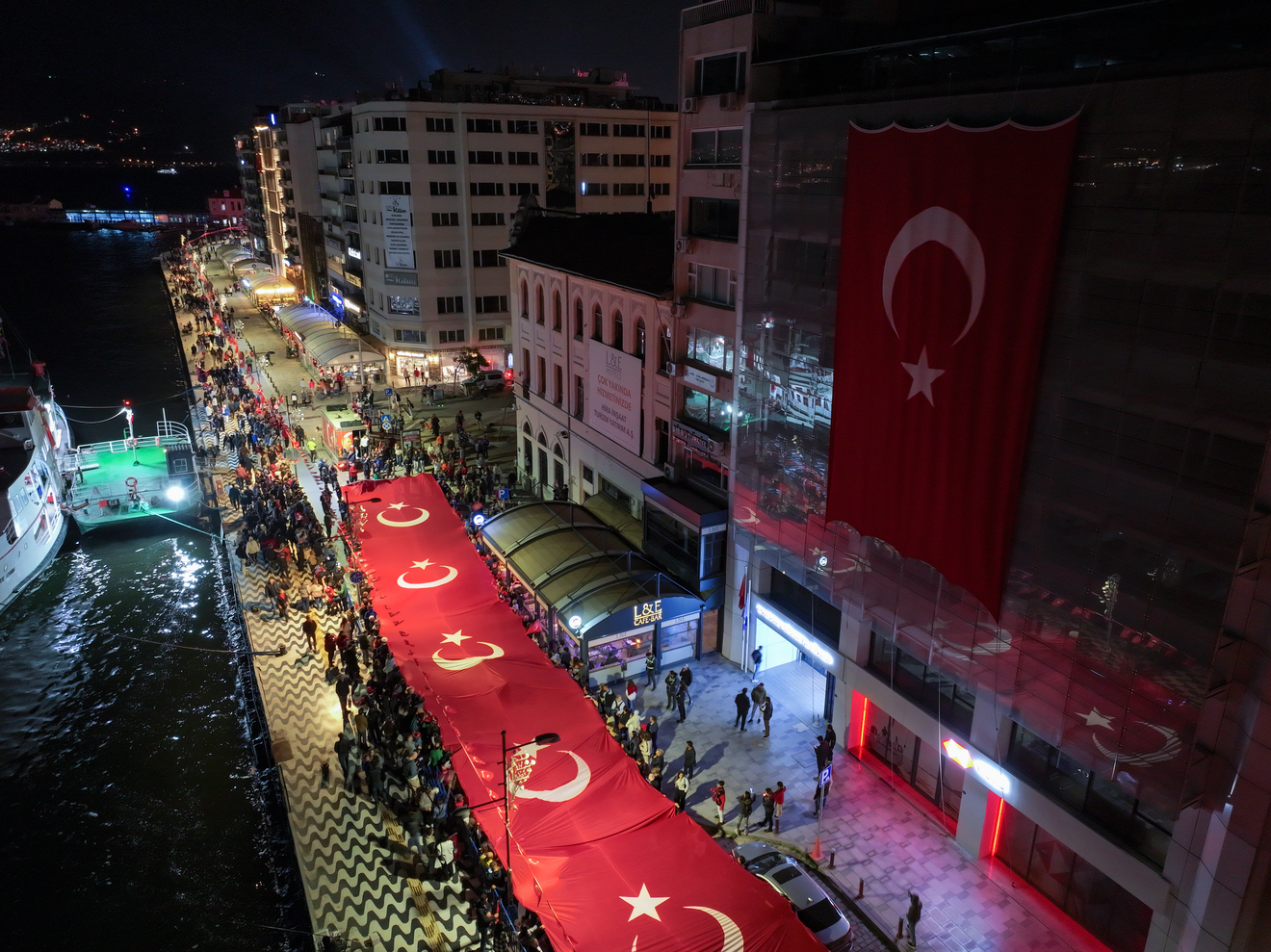 İzmir'de, Cumhuriyet'in kuruluşunun 102. yıl dönümü ve 29 Ekim Cumhuriyet Bayramı kutlandı. İzmir Valiliği tarafından Cumhuriyet Bayramı kutlamaları kapsamında Konak Meydanı'nda açılan 350 metrelik Türk bayrağı ile Cumhuriyet Meydanı'na yürüyüş ve fener alayı düzenlendi.