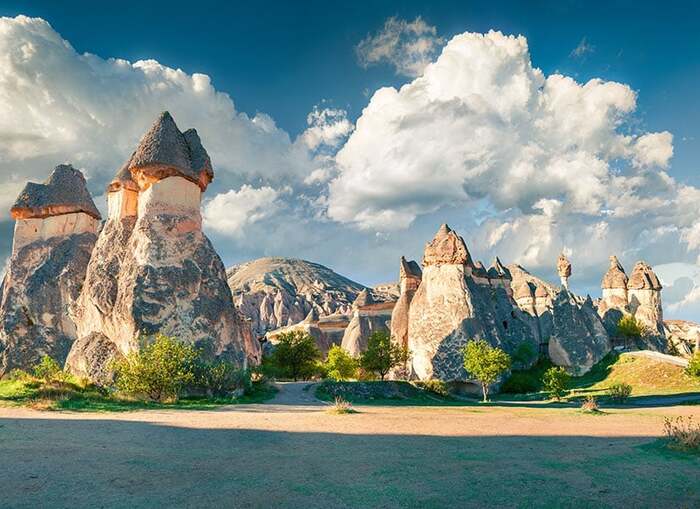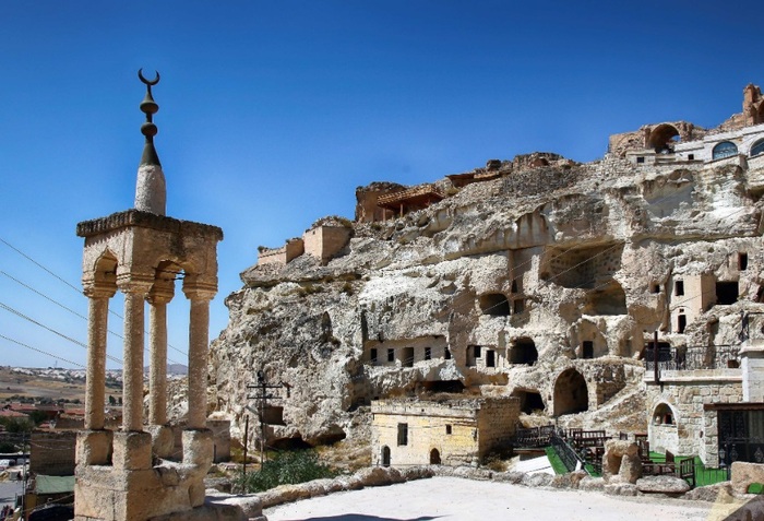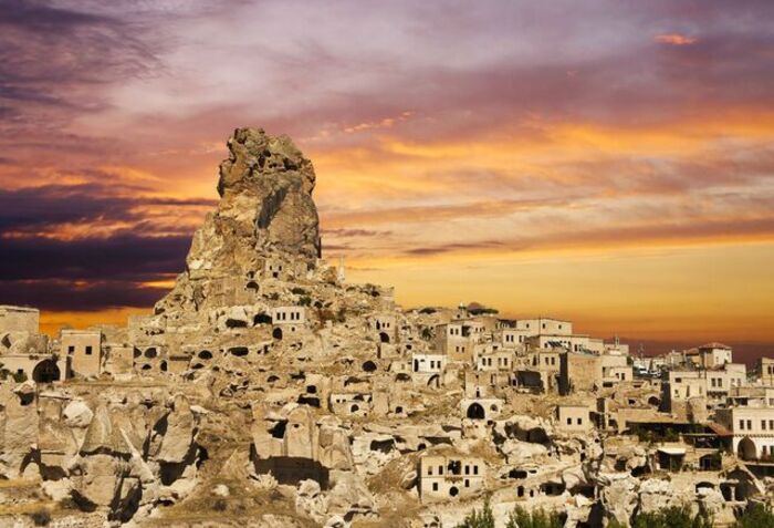 “Kayısı ve kül rengi çizgilerle süslü bazalt gökyüzünün altında, Kapadokya toprağından yükselen bir anıt gibi.”