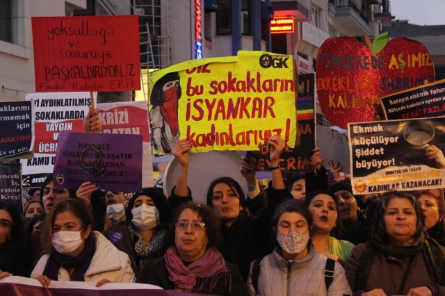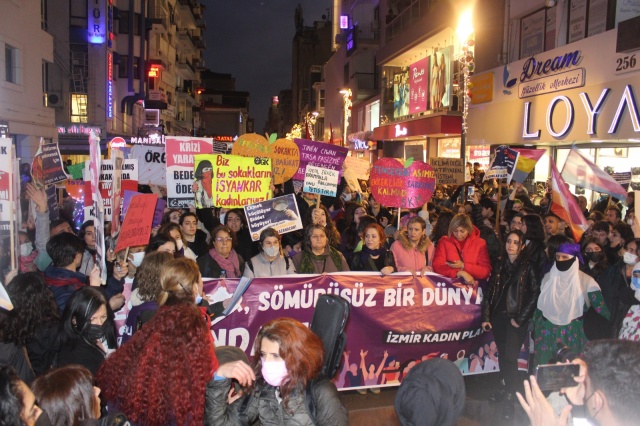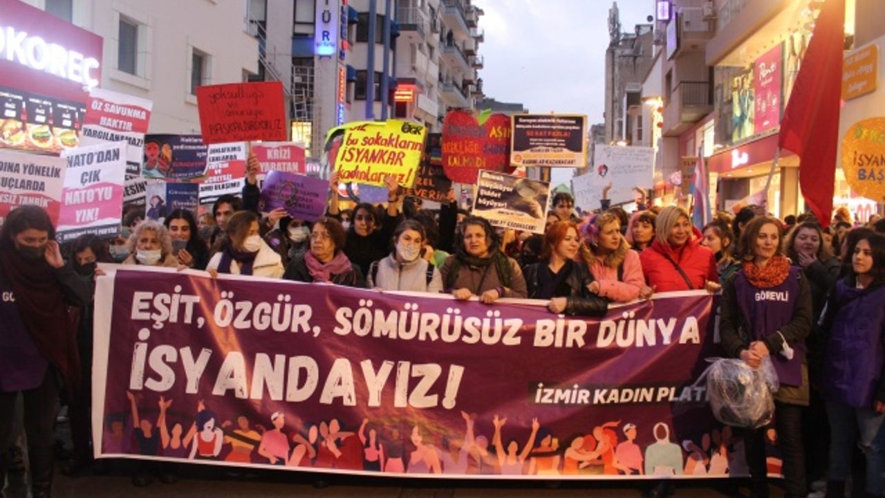 İzmir Kadınlar Platformu'nun 8 Mart için yaptığı açıklamada ise, " Yalnız 8 Mart'larda değil, her gün kadın dayanışmasını ve mücadelesini yükseltecek, yoksulluğu bize reva görenlere karşı, sömürü ve şiddete karşı eşit, özgür bir yaşamı birlikte kazanacağız" denildi.