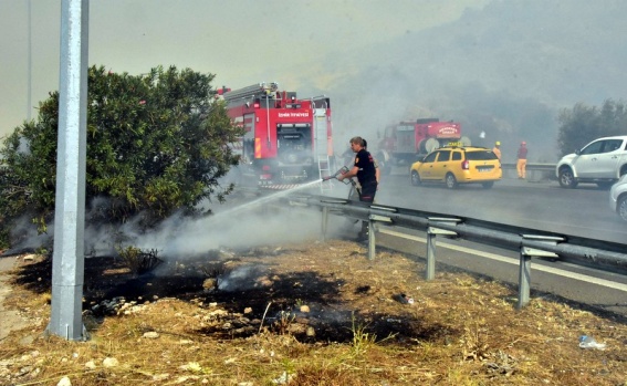Otoyoldaki sürücüler yoğun duman nedeniyle zor anlar yaşarken, rüzgarın da etkisiyle kısa sürede yayılan alevler, ekiplerin zamanında müdahalesiyle kontrol altına alındı.
