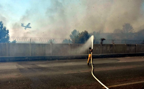 Trafik her iki yönde de durduruldu. Alevlere, itfaiye ve orman ekipleri karadan müdahaleye başladı. Havadan ise çok sayıda helikopter ve bir söndürme uçağıyla müdahale edildi.