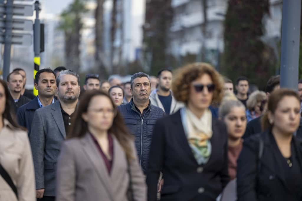 Saatler, Ata’nın hayata gözlerini yumduğu 09.05’i gösterdiğinde İzmir’de hayat iki dakika boyunca durdu. Cumhuriyet Meydanı’ndan yükselen sirenler, taşıtların kornalarıyla tüm kente yayıldı. İZDENİZ gemileri körfezde sirenleriyle eşlik etti. İzmirliler 7’den 70’e toplu taşıma araçlarında, caddelerde, meydanlarda, sokaklarda, iş yerlerinde, okullarda, şehrin dört bir yanında Ata’ya saygı duruşunda bulundu. Bu esnada duygu dolu anlar yaşandı. İşte o anlar...