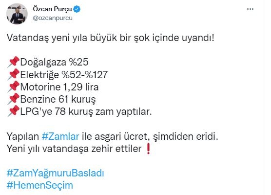 Yeni yılda benzin, LGP, motorin, elektrik, doğalgaz, otoyol, köprü ve tünel ücretlerine zam geldi. 2022 ile gelen zamlara İzmirli siyasilerin tepkisi çok sert oldu.