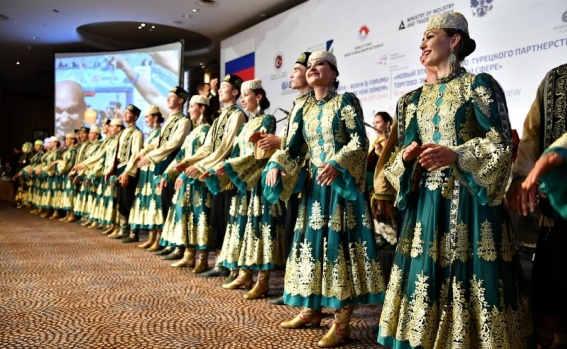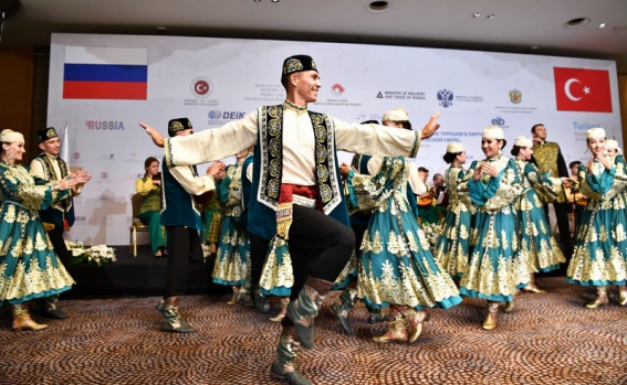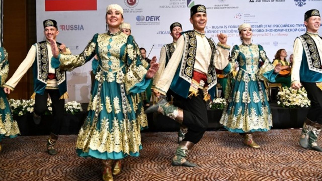 “Enerji” temasıyla bu yıl 86. kez kapılarını açan İzmir Enternasyonal Fuarı'nda, Rusya ile Türkiye arasında dostluk rüzgarları esiyor. Fuarın bu yılki partner ülkesi Rusya Federasyonu’nun düzenlediği resepsiyon birbirinden renkli gösteriler ve keyifli dakikalara sahne oldu. Resepsiyona İzmir Büyükşehir Belediye Başkanı Aziz Kocaoğlu’nun yanı sıra Enerji, Sanayi ve İletişim Bakanı Pavel V. Hotsenko başkanlığındaki Stavropol heyeti, Tataristan Başbakan Yardımcısı ve Sanayi ve Ticaret Bakanı Albert Karimov ile pek çok yabancı ziyaretçi katıldı. Tataristan devlet sanatçılarının sahne aldığı gece de tam bir görsel şölen yaşandı. Geceye damga vuran ezgiler, ‘Bulgar Kızları Üçlüsü’nün Türkçe seslendirdiği 60'yı yıllarda Mavi Işıklar grubunun üne kavuşturduğu ‘Helvacı’ isimli parça oldu.