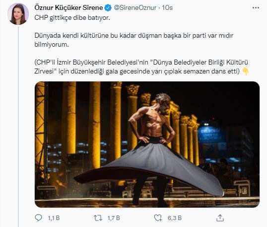 Son dönemde sosyal medyada temelsiz çıkışlarıyla yer alan AKP'li Öznur Küçüker Sirene, bu dansa tepki gösterenlerin en başında geliyor.