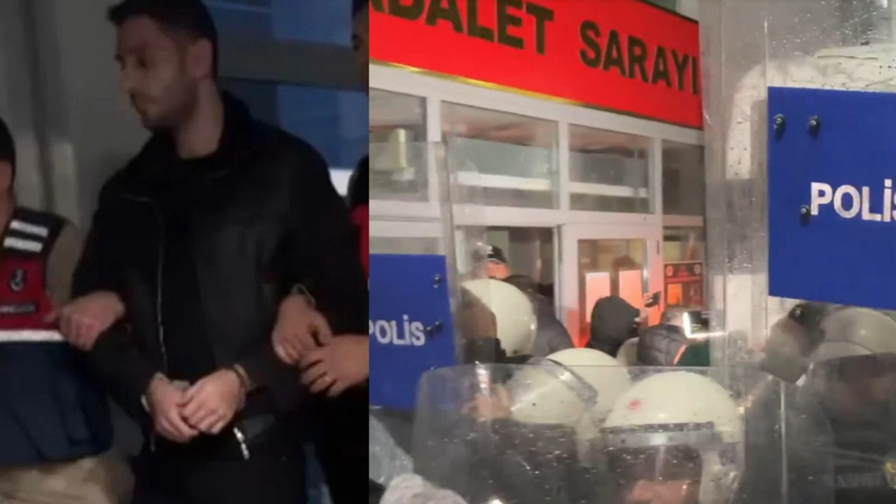 Sonel ve koruma polisi Şükrü Eroğlu adliyeden çıkartılmaya çalışılırken adliye önünde bekleyenler ile polis arasında arbede yaşandı.